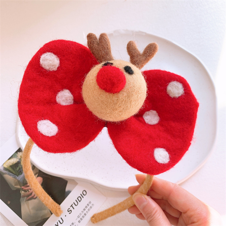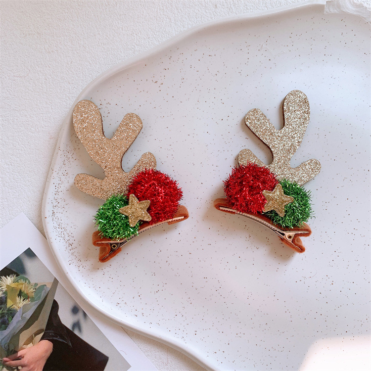 어린이 크리스마스 머리띠 모자 봉제 뿔 머리핀 귀여운 만화 엘크 머리핀 작은 소녀 원피스 머리띠