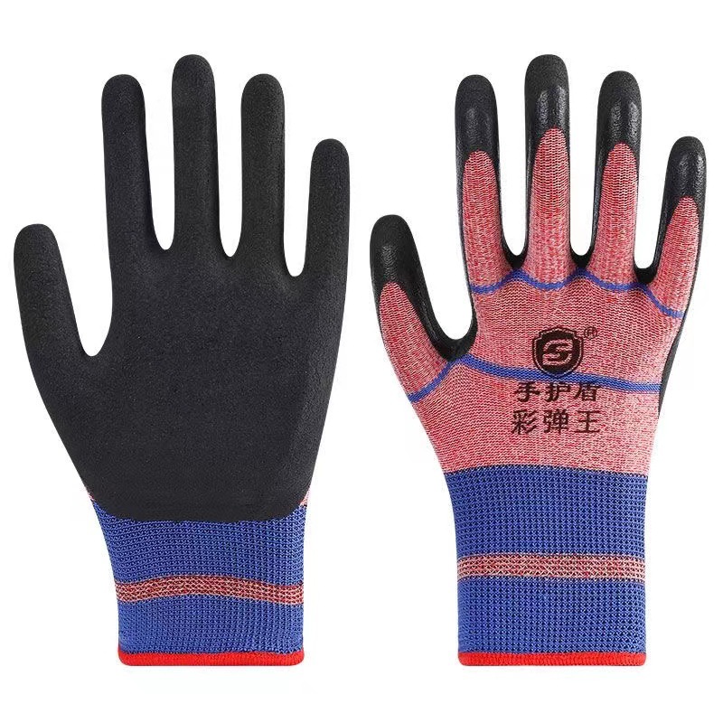 LaTeX 탄성 킹 폼 장갑 노동 보호 내마모성 미끄럼 통기성 침식 플랫 교수형 폼 킹 작업 보호 장갑