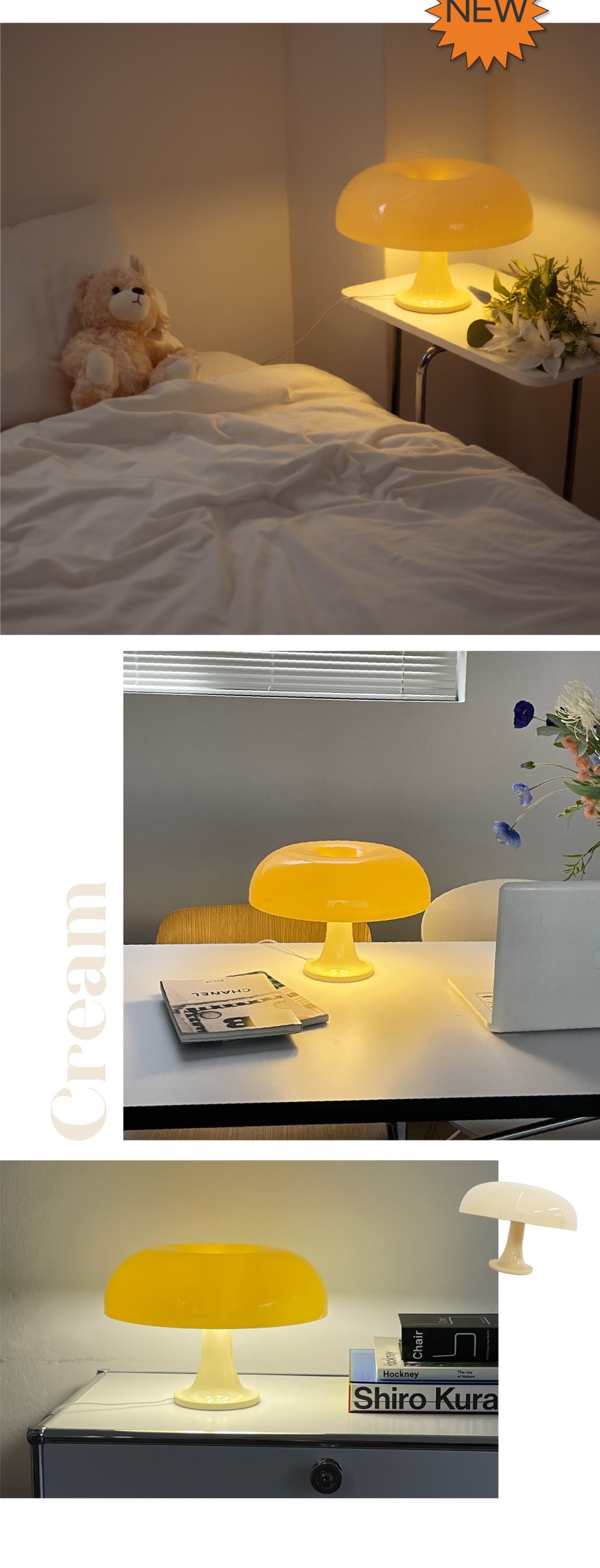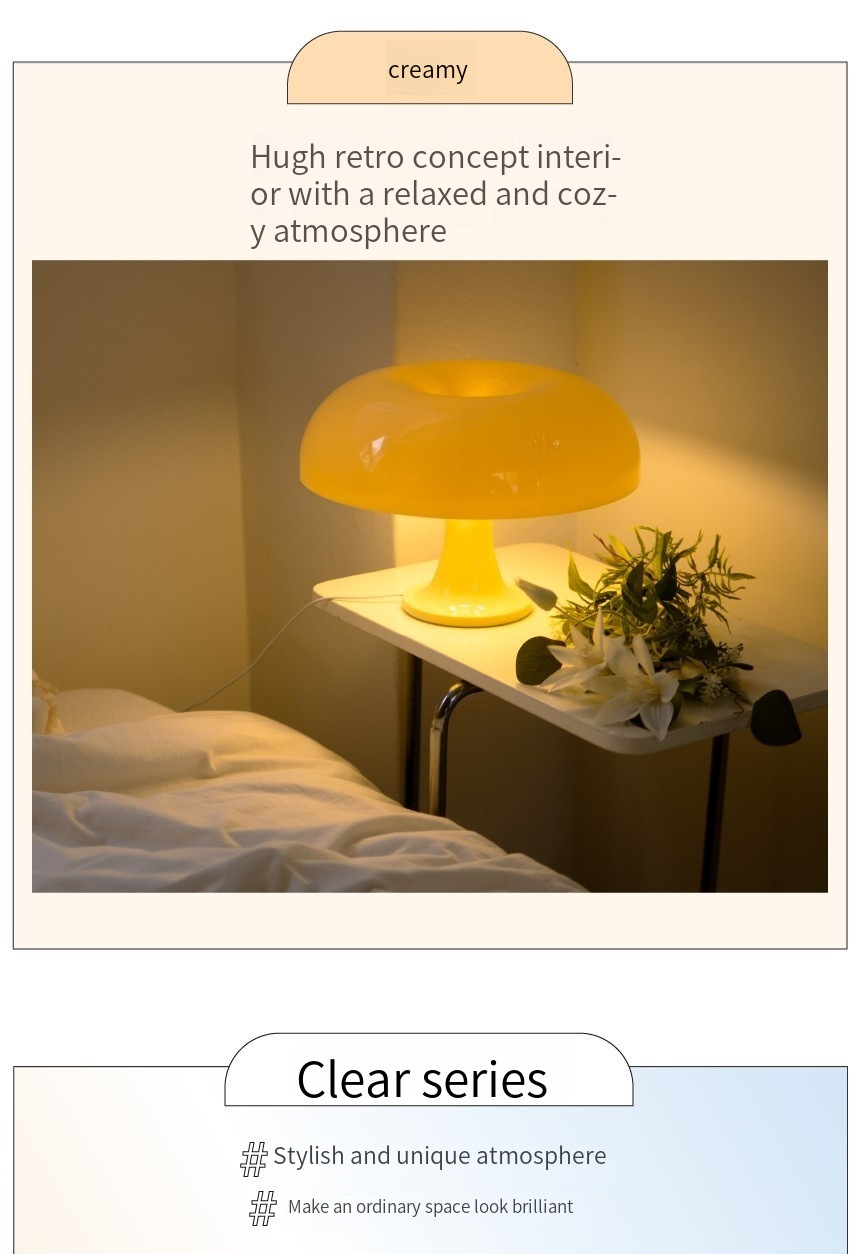 현대적인 미니멀리스트 버섯 램프, 크림색 버섯 테이블 램프, 침실 침대 옆 독서 분위기 조명, 작은 야간 조명, 성게 램프, 라이트 럭셔리