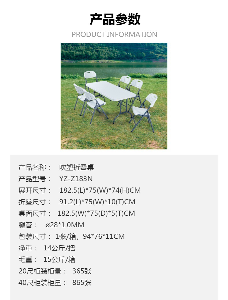 中空吹塑户外折叠桌(型号YZ-Z183N)