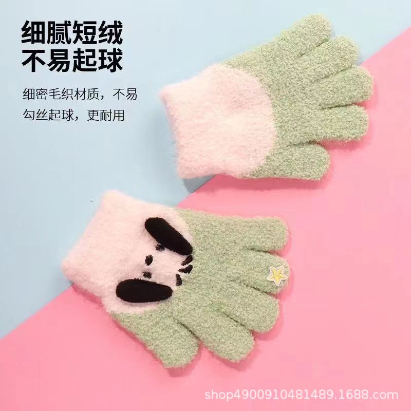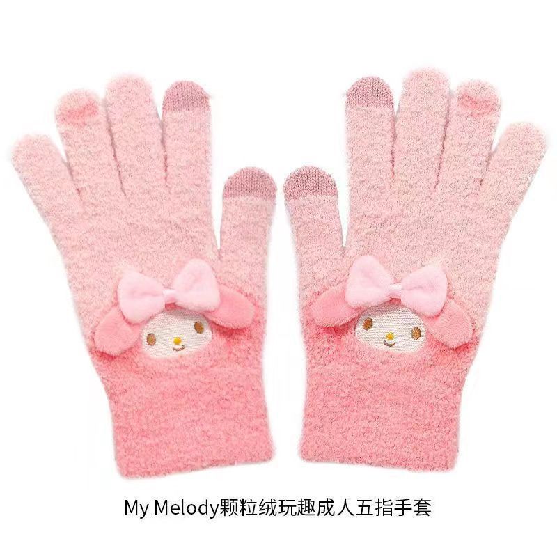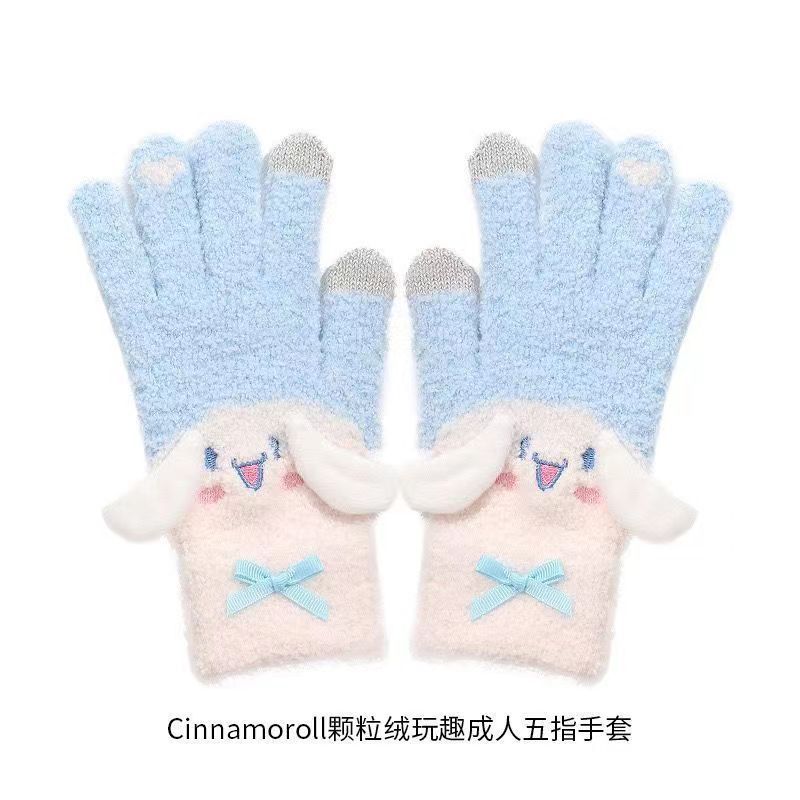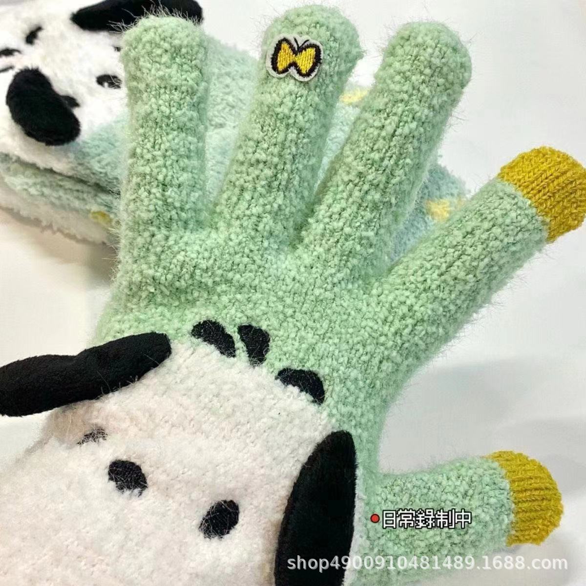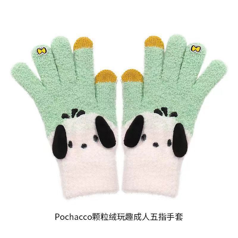 장갑이있는 MINISO 산리오 옥 구이 개 곡물 벨벳 놀이 재미 다섯 손가락 장갑 따뜻하게 유지하기 위해 휴대 전화 울을 재생할 수 있습니다