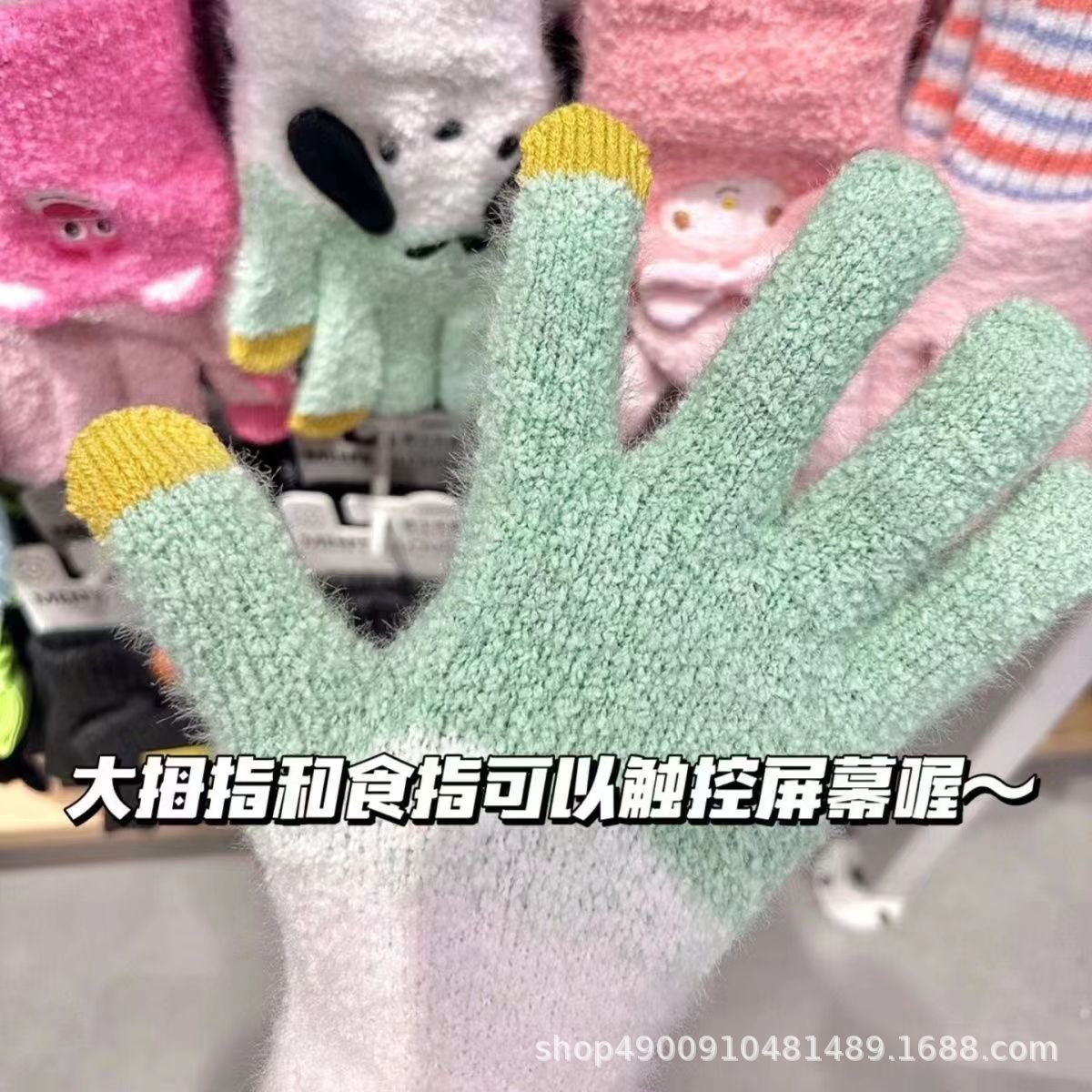 장갑이있는 MINISO 산리오 옥 구이 개 곡물 벨벳 놀이 재미 다섯 손가락 장갑 따뜻하게 유지하기 위해 휴대 전화 울을 재생할 수 있습니다스토어 가기