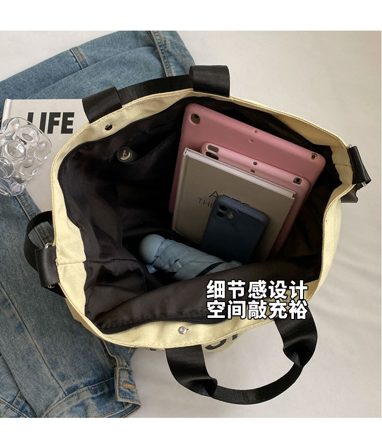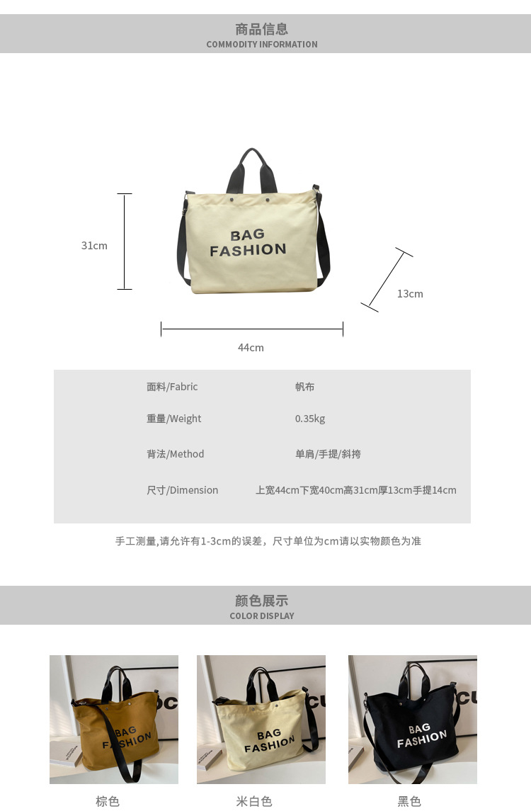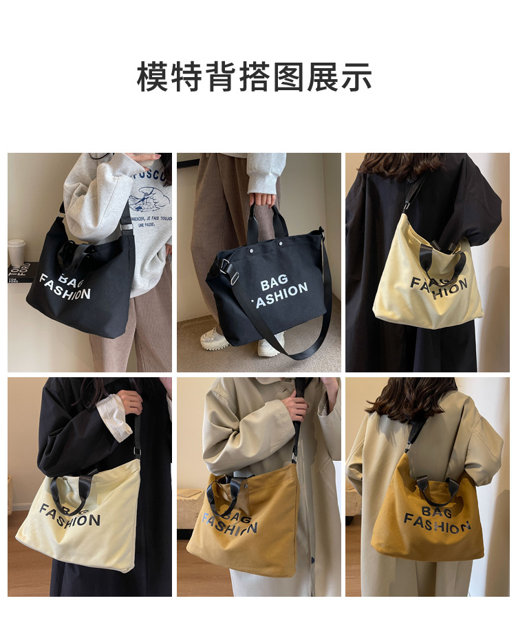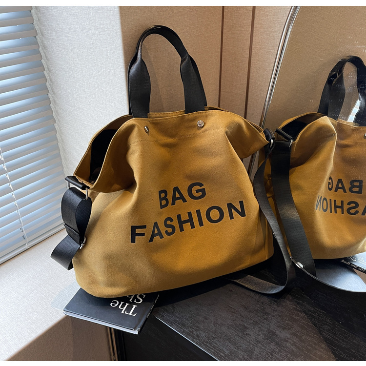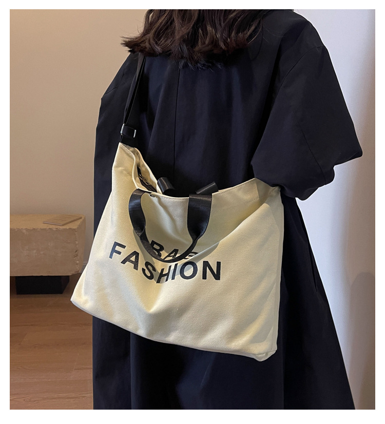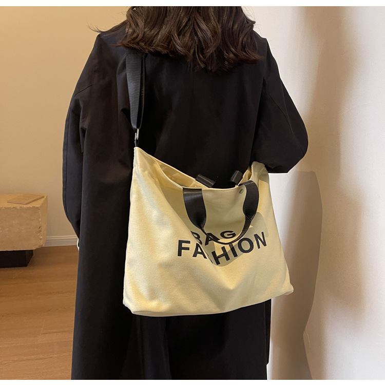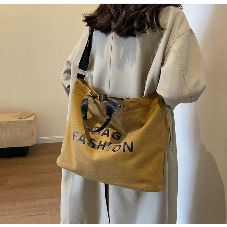 유행 편지 인쇄 대용량 캔버스 2023 겨울 통근 질감 캐주얼 휴대용 어깨 겨드랑이 가방스토어 가기