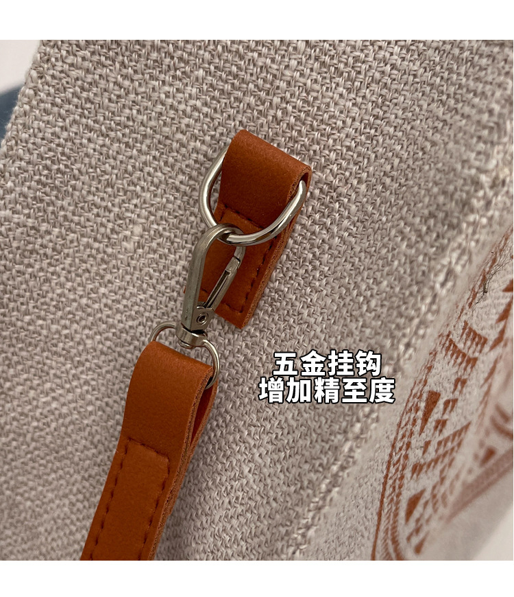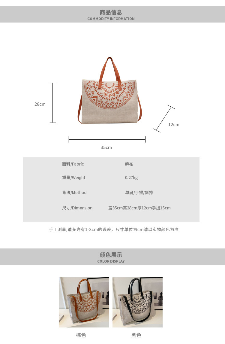 린넨 민족 스타일 캔버스 가방 대용량 2023 캐주얼 새로운 간단한 PU 스티칭 토트 어깨 핸드백스토어 가기