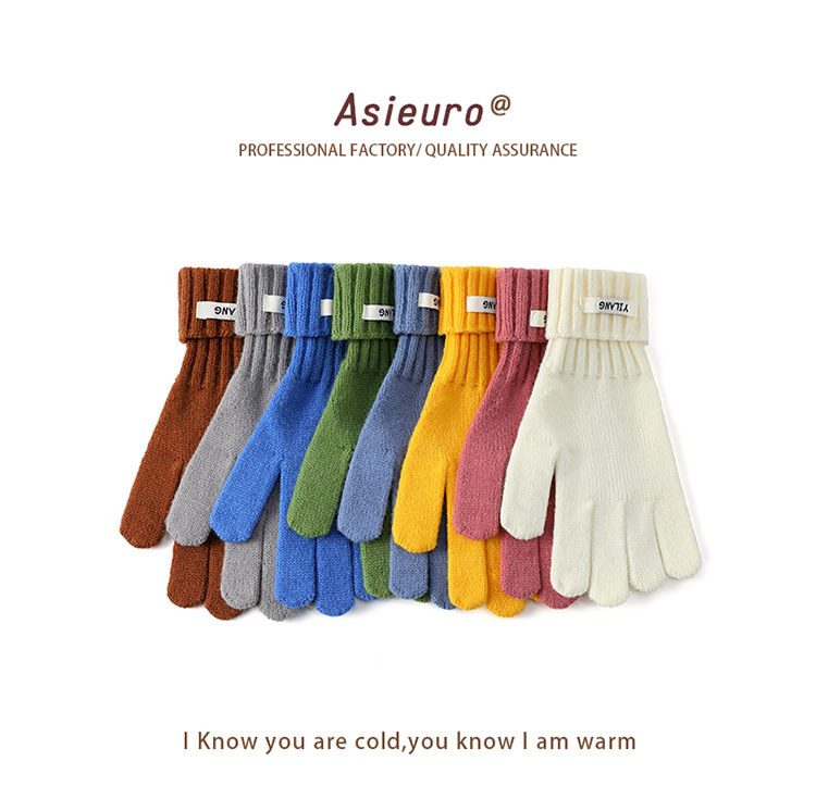한국의 겨울 장갑 따뜻한 다섯 손가락 캔디 컬러 터치 스크린 애호가 모든 경기 가을과 겨울 오픈 핑거 니트 울 따뜻한