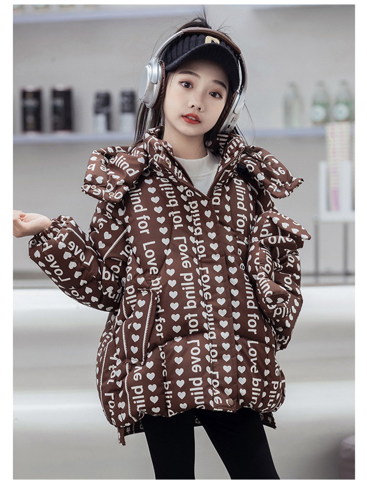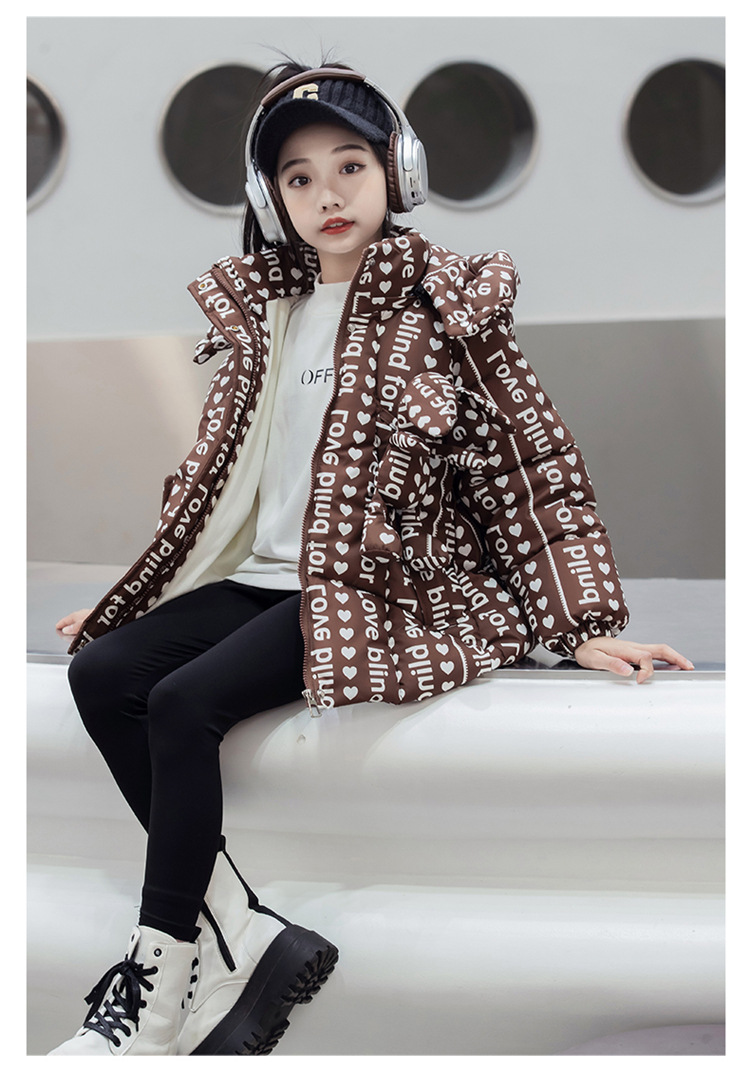 2023 새로운 아동복 기모 패딩 겨울 면 패딩 재킷 슈퍼 귀여운 공주 스타일 소녀 웨스턴 스타일 방풍 따뜻한 면 패딩 재킷 조수스토어 가기