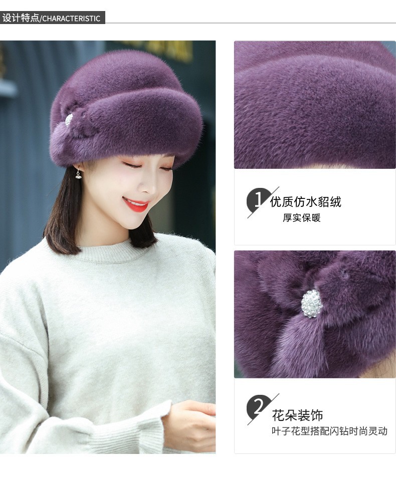 새로운 모피 모자 여성 겨울 중년 및 노인 패션 따뜻한 모자 서양식 할머니 모자 모조 밍크 플러시 베레모