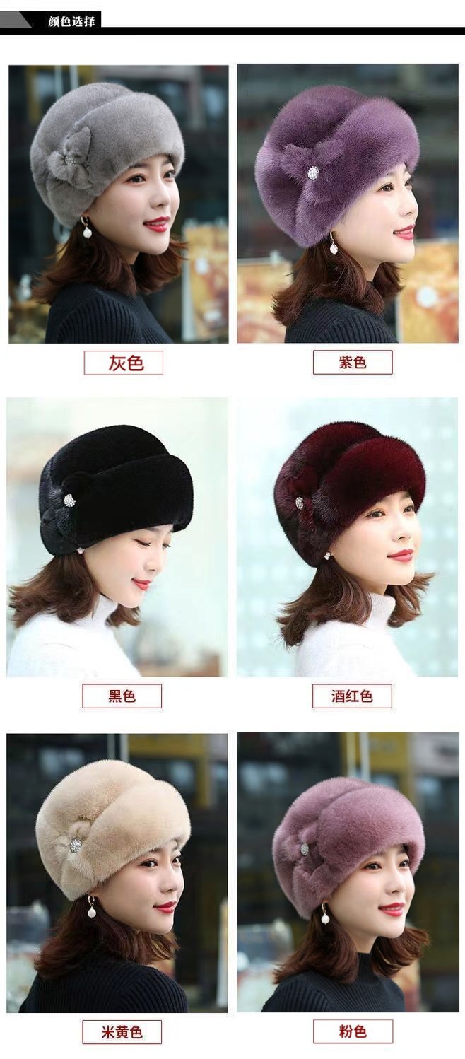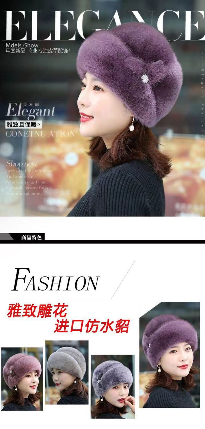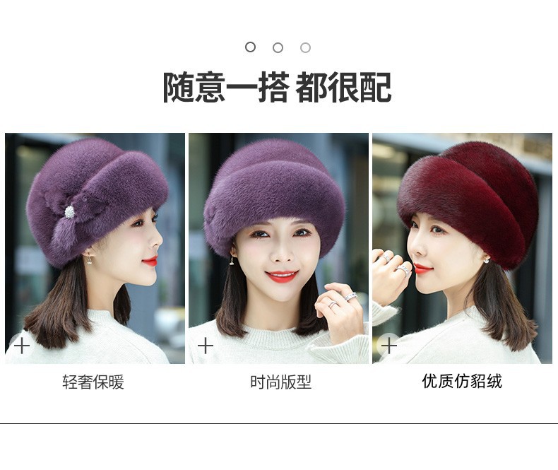 새로운 모피 모자 여성 겨울 중년 및 노인 패션 따뜻한 모자 서양식 할머니 모자 모조 밍크 플러시 베레모스토어 가기