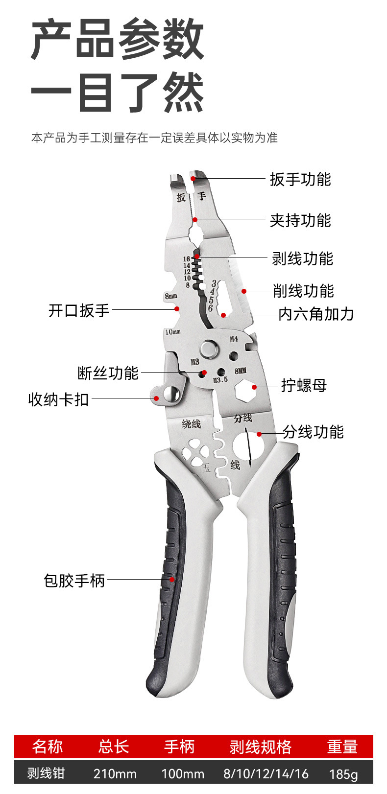 국경 간 펜치 공구 와이어 스트리퍼 산업 등급 전기 특수 7 인치 25 인치 1 와이어 절단 다기능 와이어 스트리퍼스토어 가기