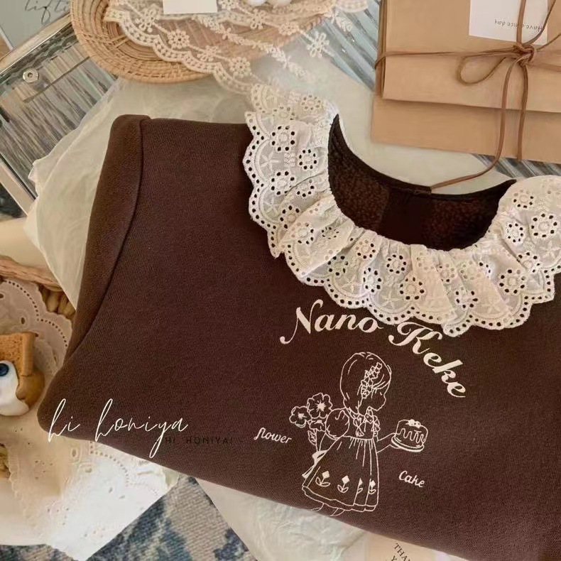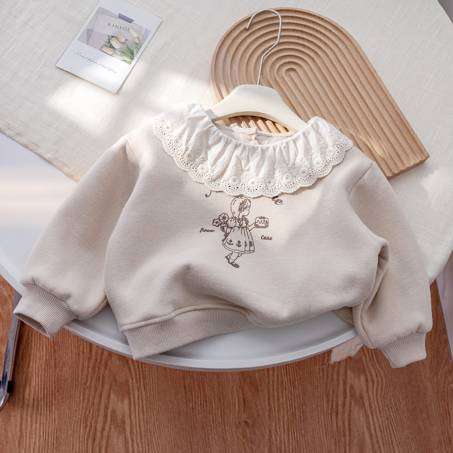 여아 한국식 기모 스웨터 2023 겨울 새로운 세련된 레이스 아기 두꺼운 원피스 벨벳 탑스토어 가기