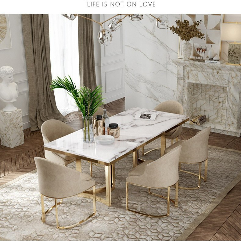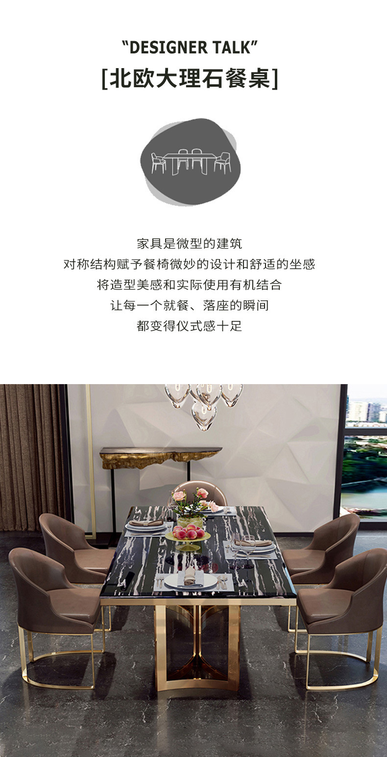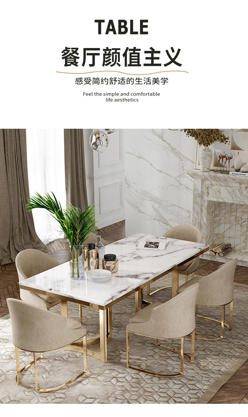 북유럽 식탁 테이블과 의자 조합 레스토랑 대리석 가정용 직사각형 식탁 포스트 모던 간단한 식사