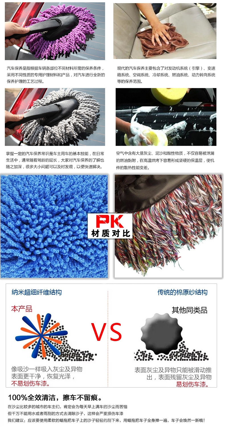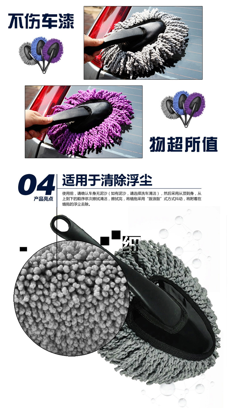 3、ABS塑料把手,帆布质的包边,纳米纤维刷毛,不伤车漆。
