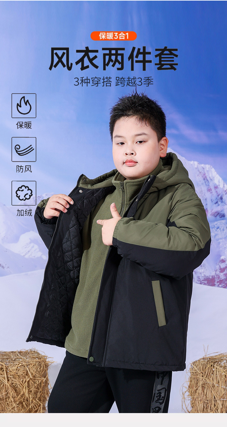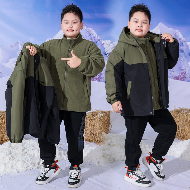 뚱뚱한 소년의 3 대 1 분리 가능한 초대형 아이들의 가을과 겨울 퀼트 두꺼운 교복 재킷스토어 가기