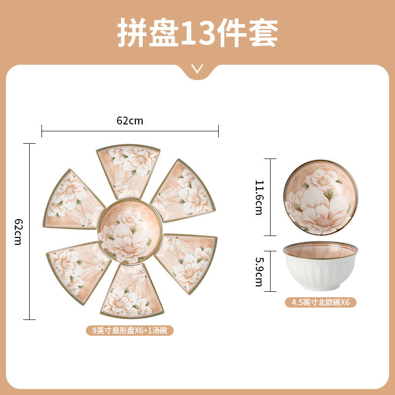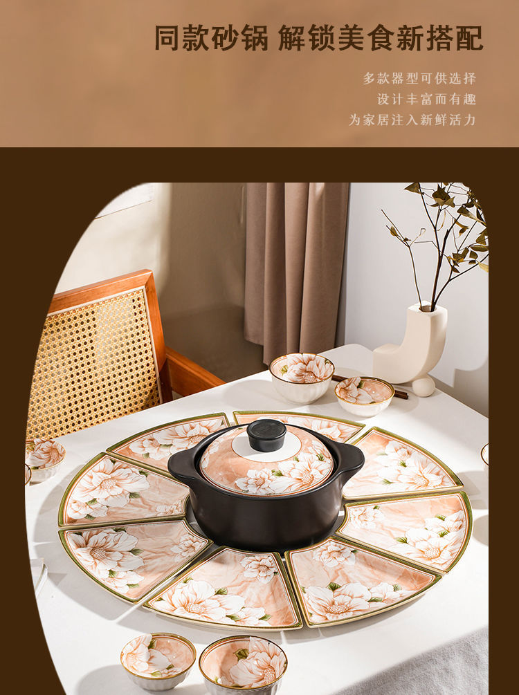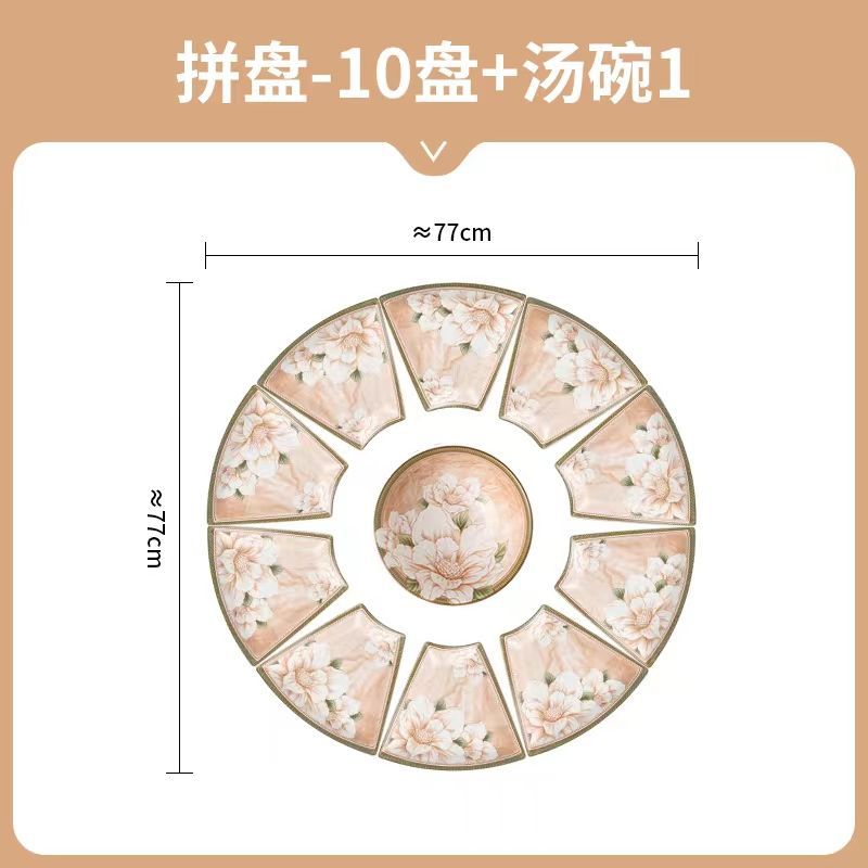 동백 식기 세라믹 플래터 파티 요리 고급 세트 부채 모양의 접시 턴테이블 새해 전날 저녁 상봉 저녁 식사스토어 가기