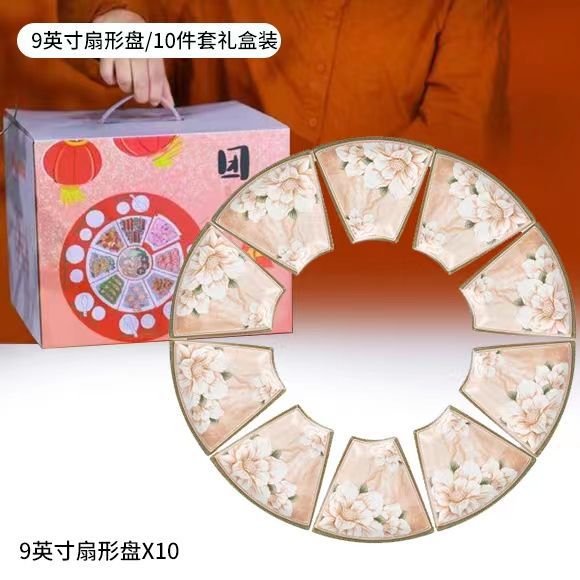 • 우아한 동백 선물 상자 부채 모양의 접시 X8 + 큰 그릇 X1