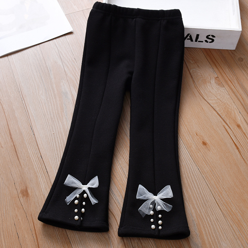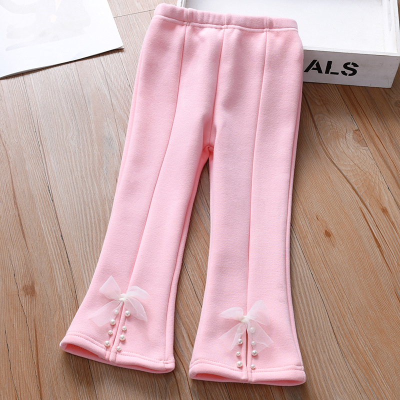 여아용 세련된 겨울용 벨벳 안감 공주풍 진주 레깅스 2025 신상 아동 바지 겨울옷 일체형 벨벳