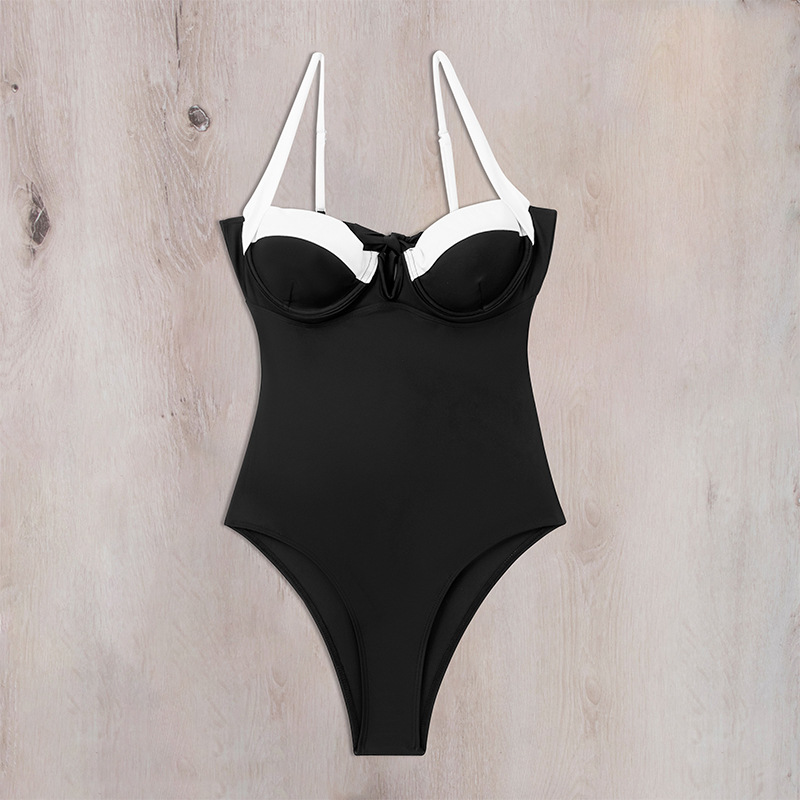 2024 유럽과 미국 크로스 보더 뉴 스틸 서포트 하드 커버 원피스 수영복 컬러 매칭이 모인 원피스 비키니 여성 섹시 수영복