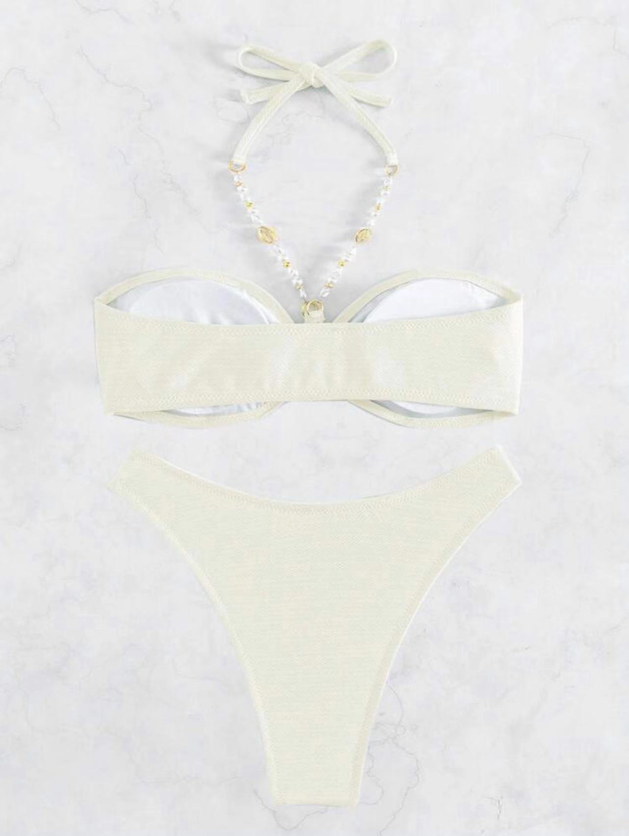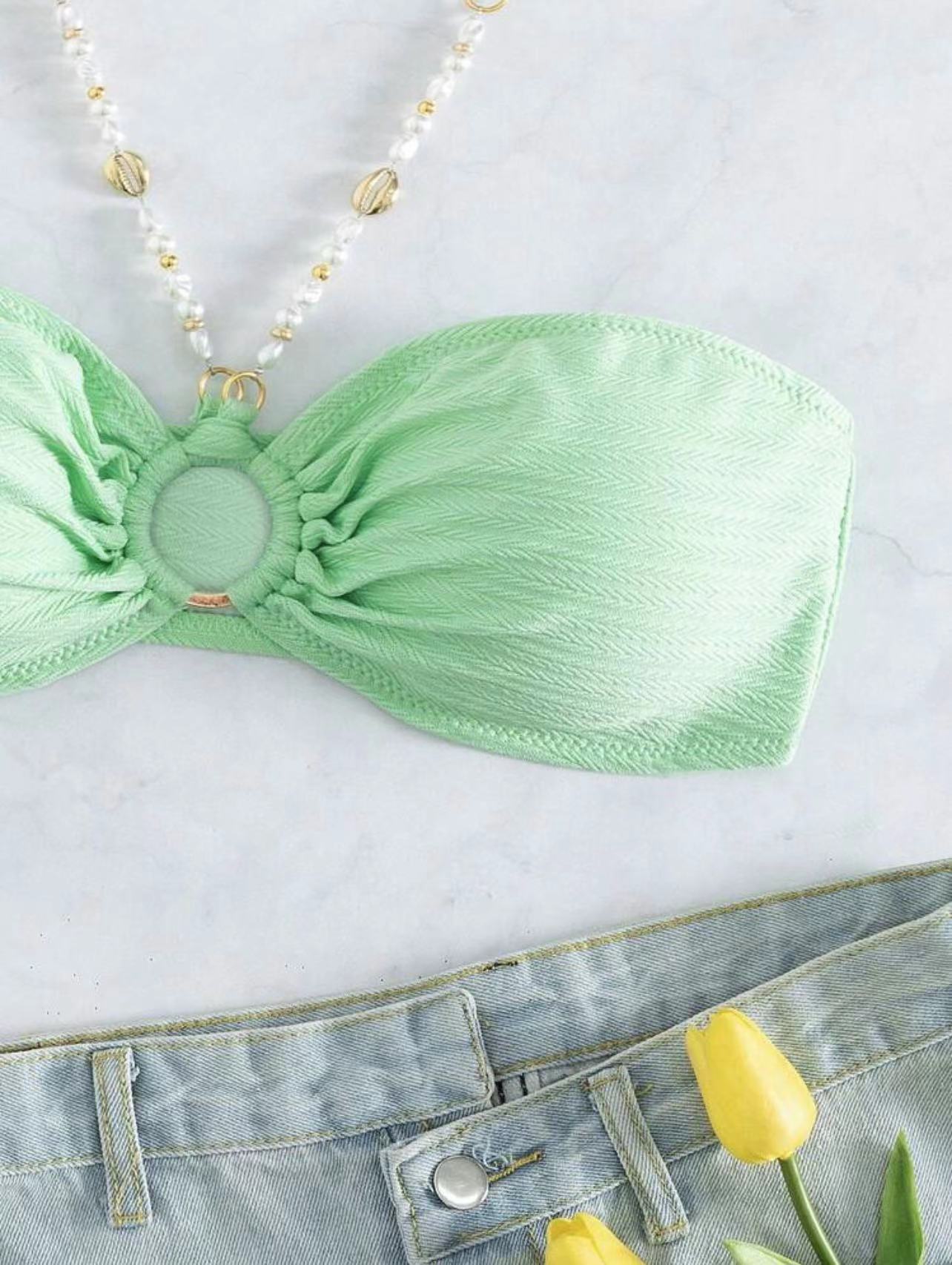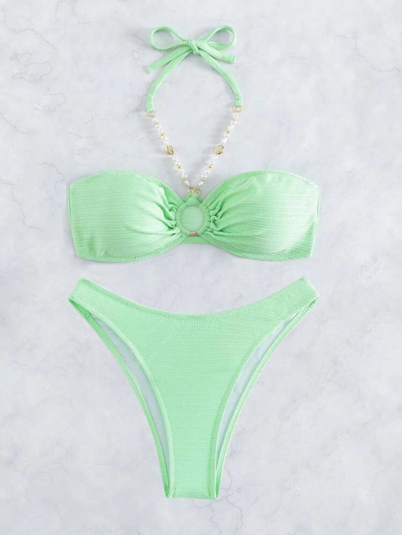 2024 유럽과 미국의 새로운 섹시한 비키니 링크 단색 교수형 목 조달 여성 비치 비키니 국경 대외 무역스토어 가기