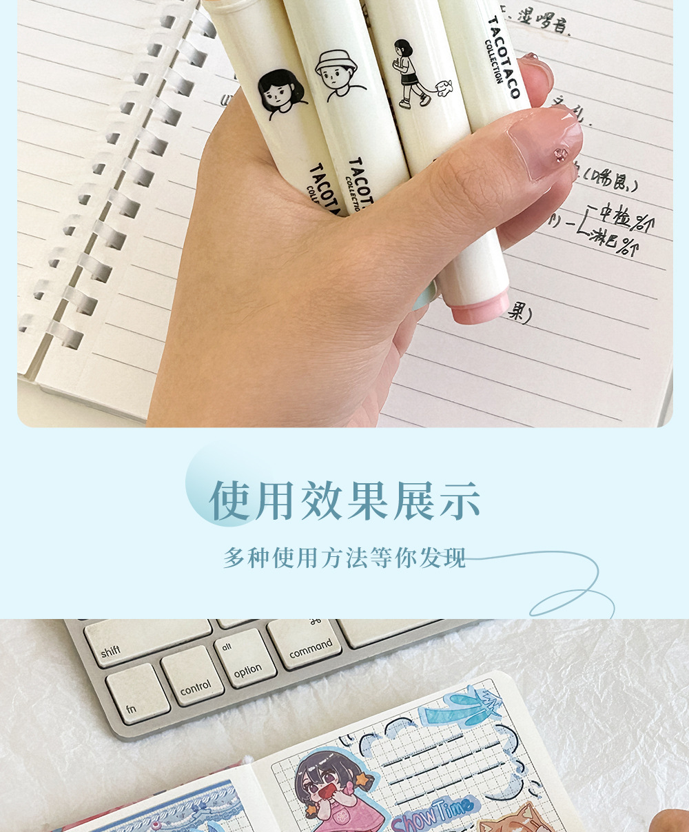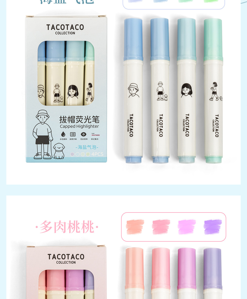 마이와 TACOTACO 캡 형광펜 학생 컬러 마커 키 마커 눈 보호 색상 12 색 세트