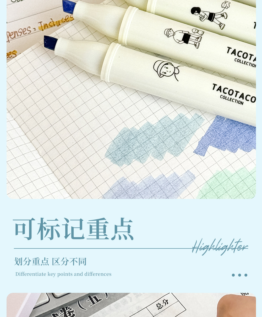 마이와 TACOTACO 캡 형광펜 학생 컬러 마커 키 마커 눈 보호 색상 12 색 세트스토어 가기