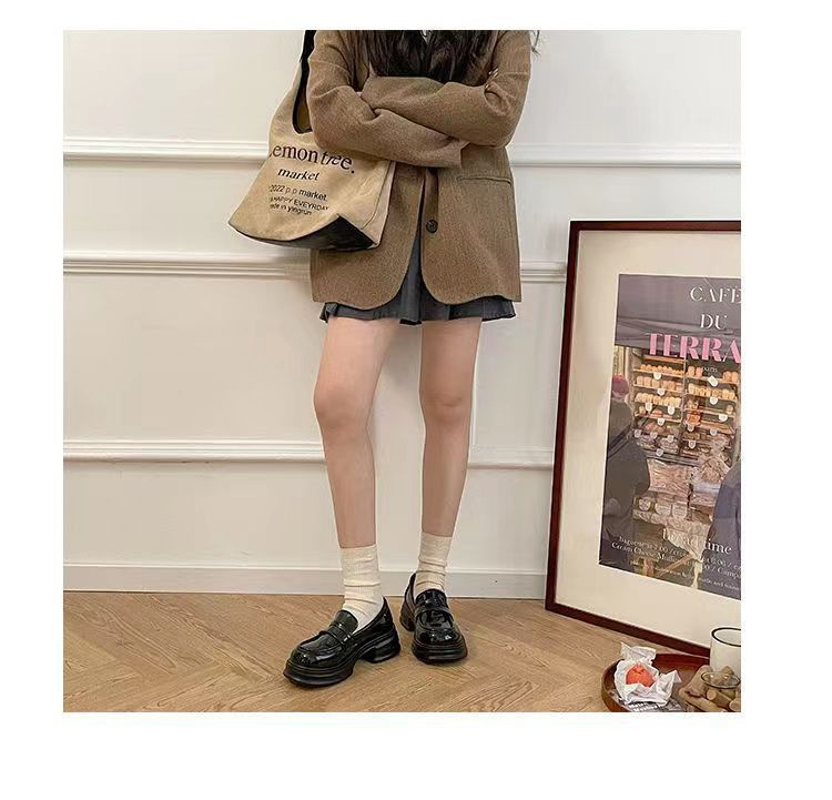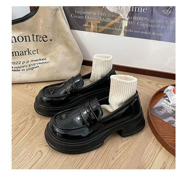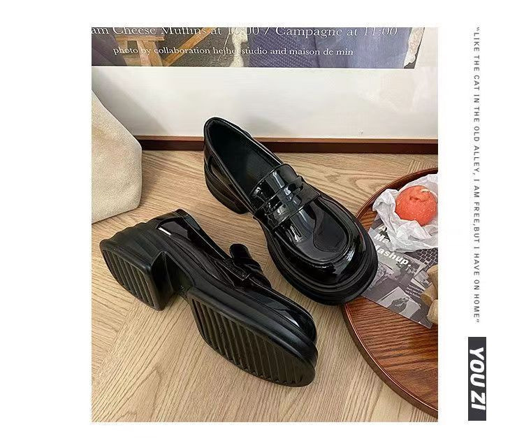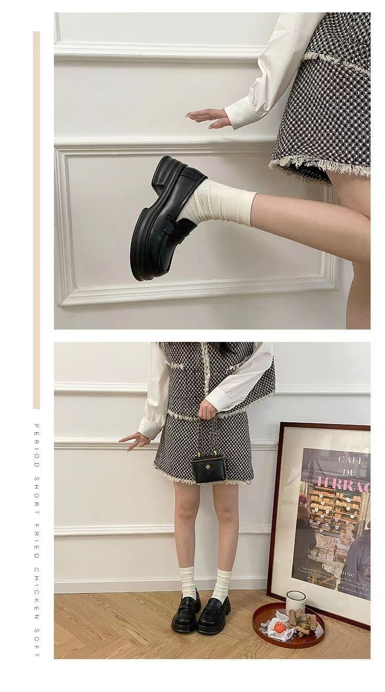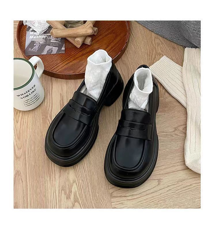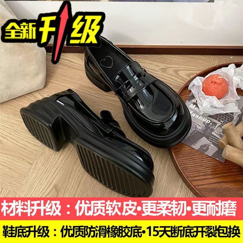 여성을위한 영국 스타일 작은 가죽 신발 2024 봄, 가을 학생 jk 두꺼운 밑창 메리 제인 싱글 신발 높이 증가 로퍼 ins 트렌드스토어 가기