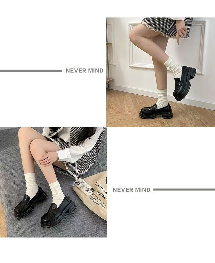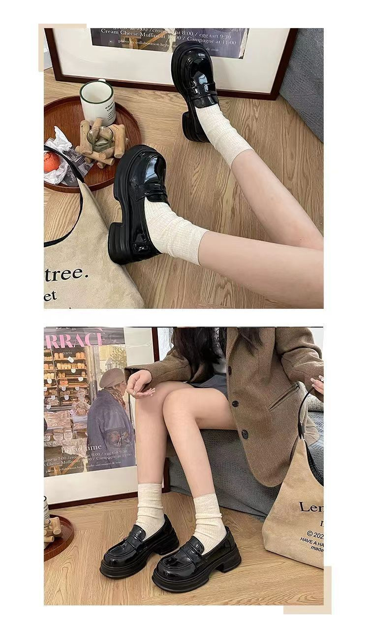 여성을위한 영국 스타일 작은 가죽 신발 2024 봄, 가을 학생 jk 두꺼운 밑창 메리 제인 싱글 신발 높이 증가 로퍼 ins 트렌드