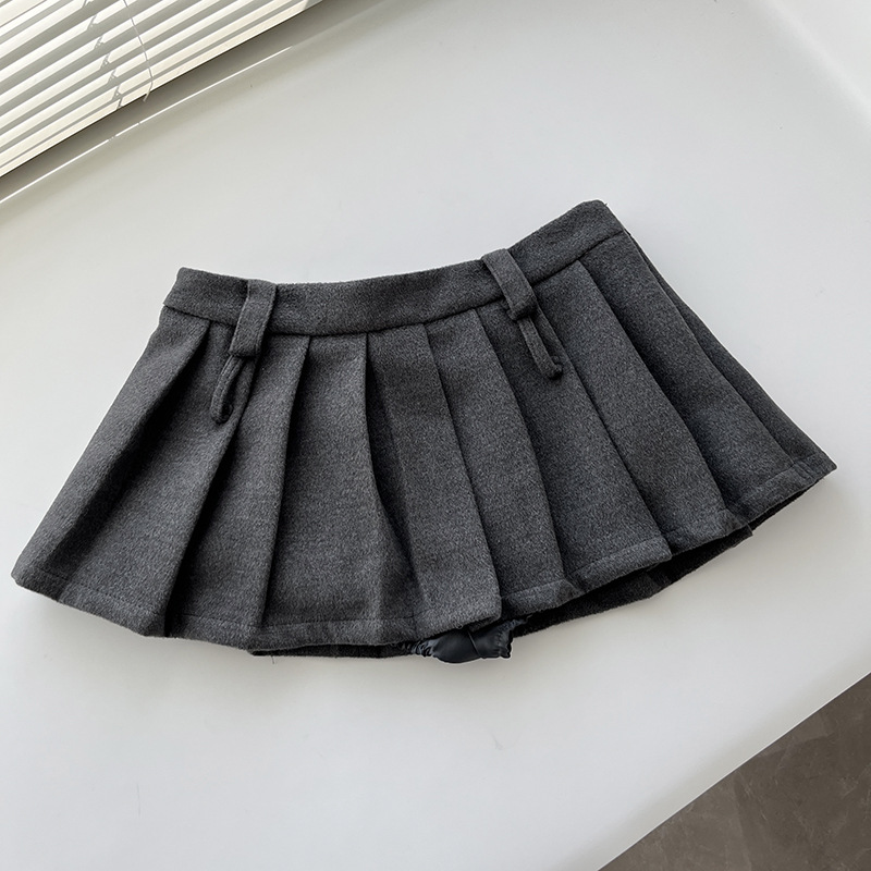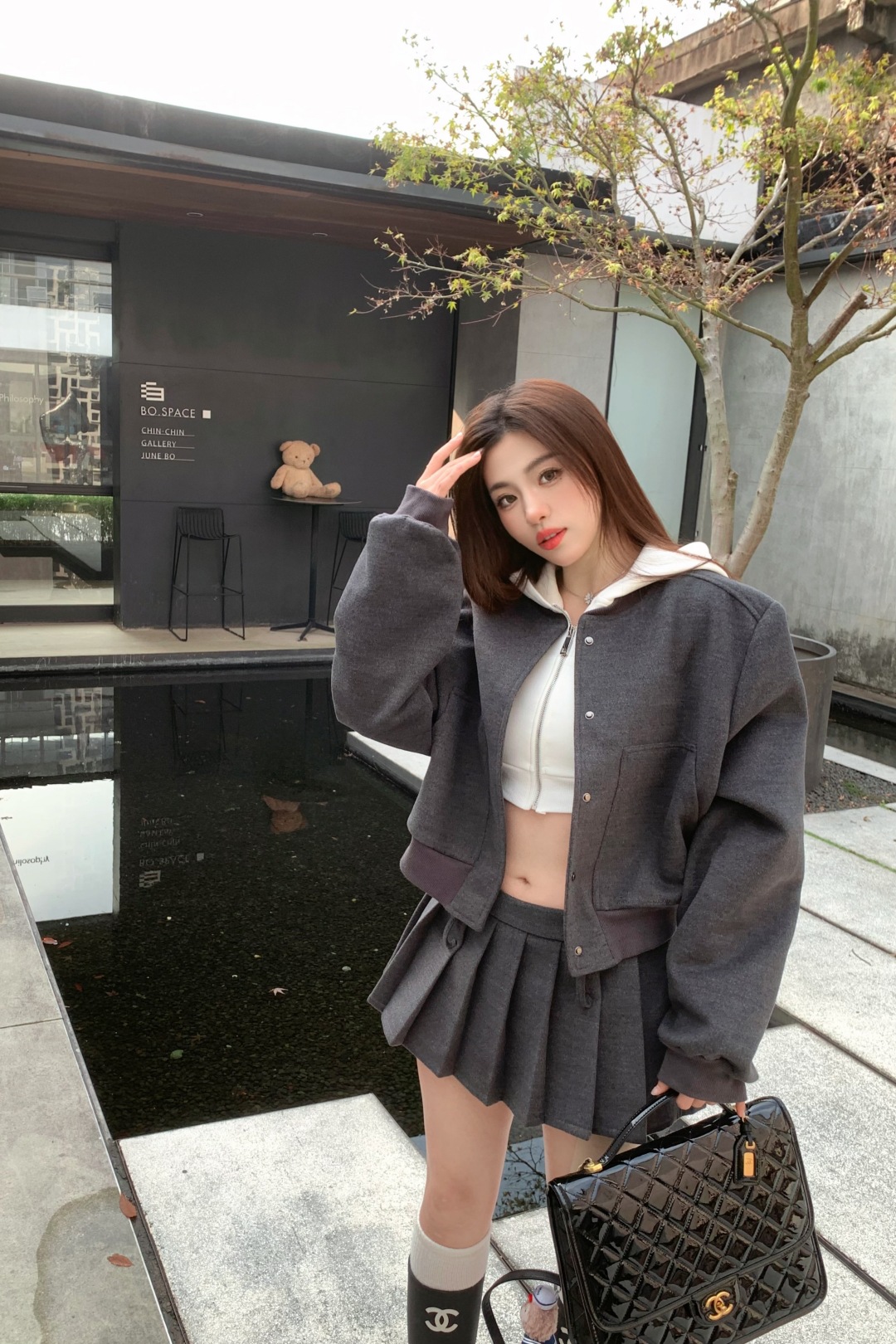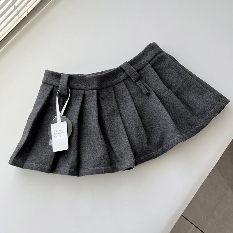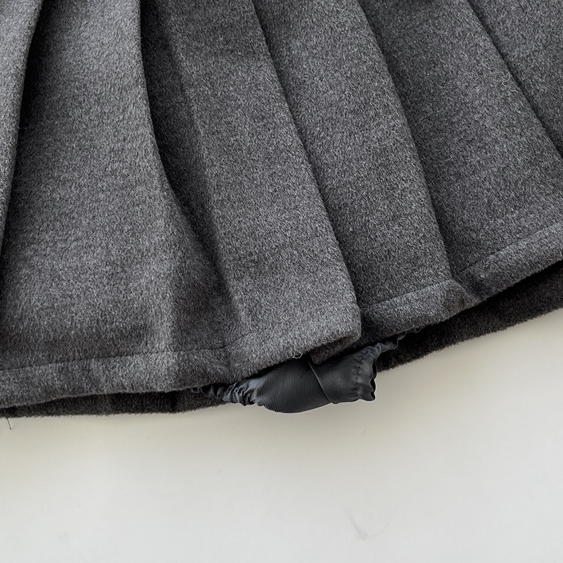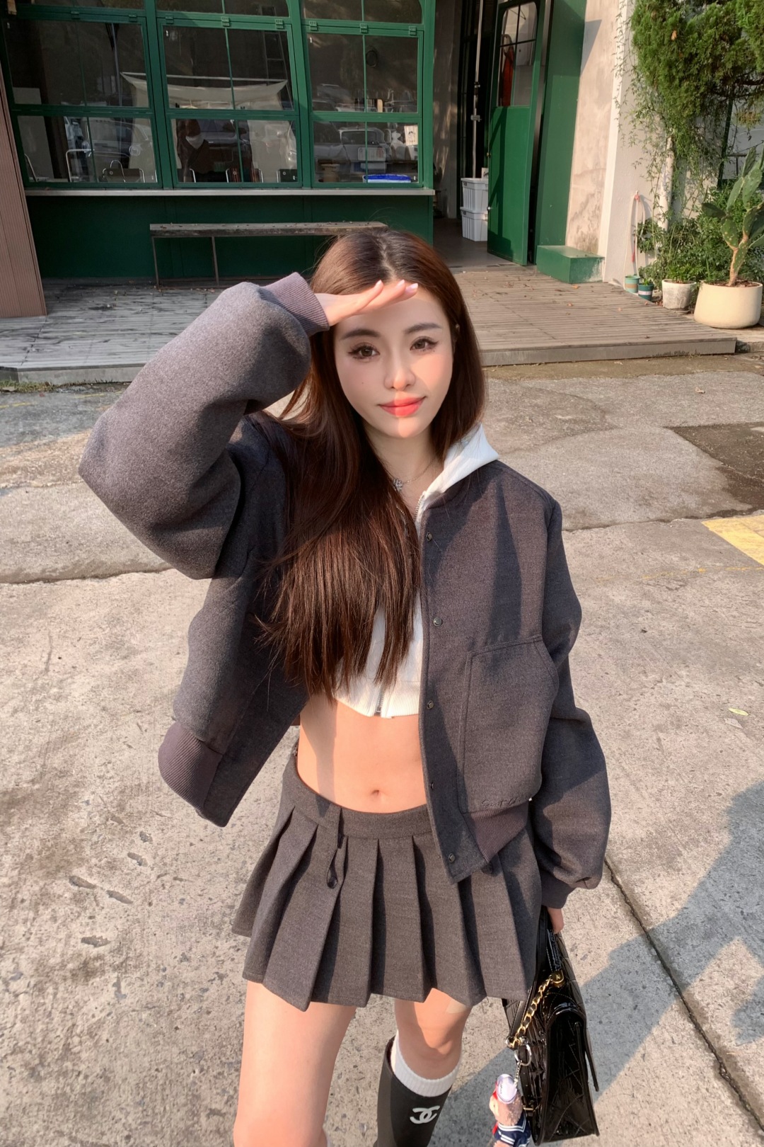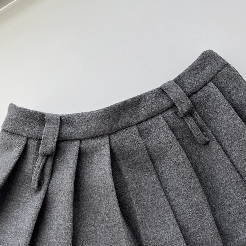 모직 세트 여성용 모직 짧은 야구 재킷 & 모직 더블 행 벨트 버클 플리츠 스커트 바지 3240-3241스토어 가기