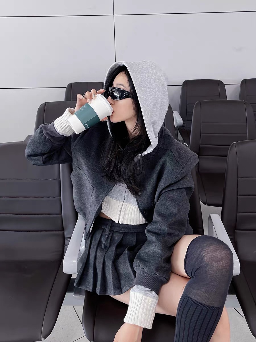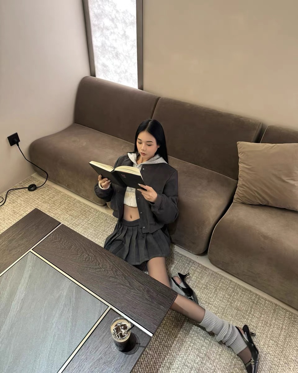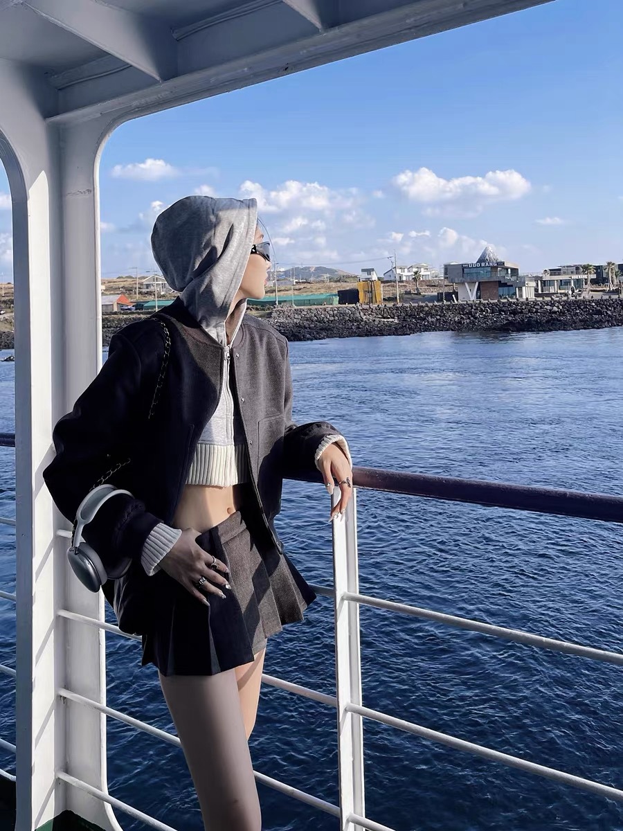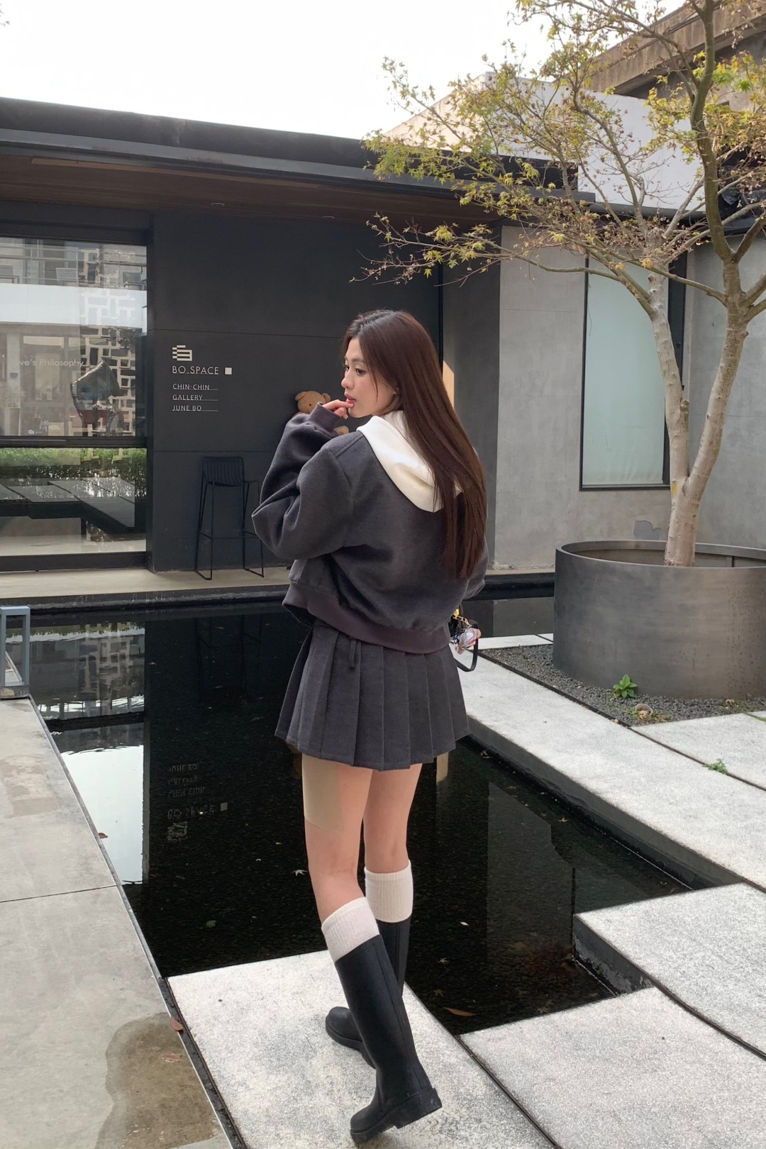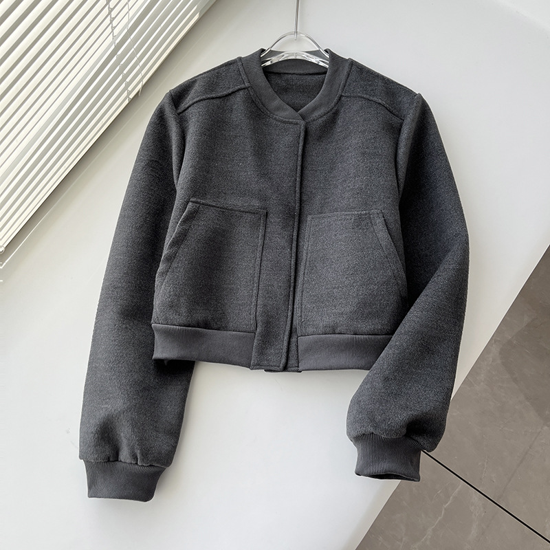 모직 세트 여성용 모직 짧은 야구 재킷 & 모직 더블 행 벨트 버클 플리츠 스커트 바지 3240-3241스토어 가기