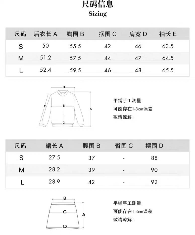 모직 세트 여성용 모직 짧은 야구 재킷 & 모직 더블 행 벨트 버클 플리츠 스커트 바지 3240-3241