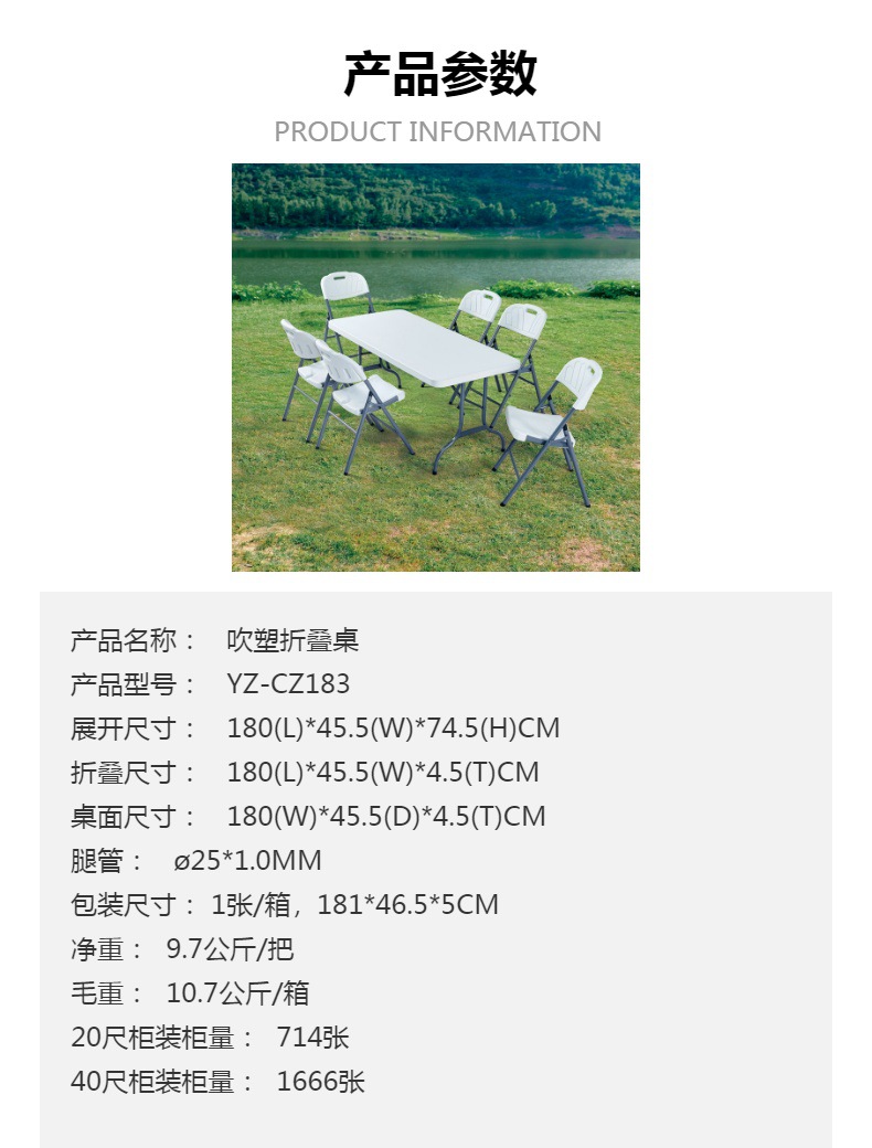中空吹塑户外折叠桌(型号YZ-CZ183)