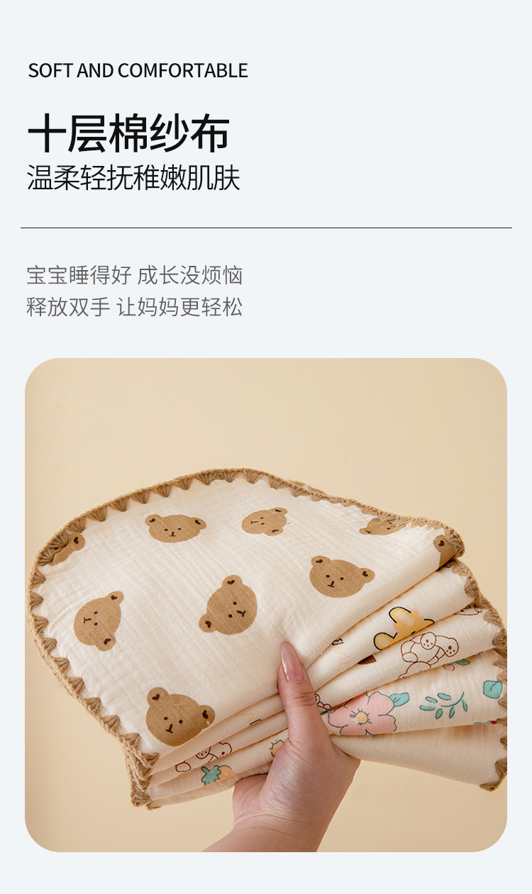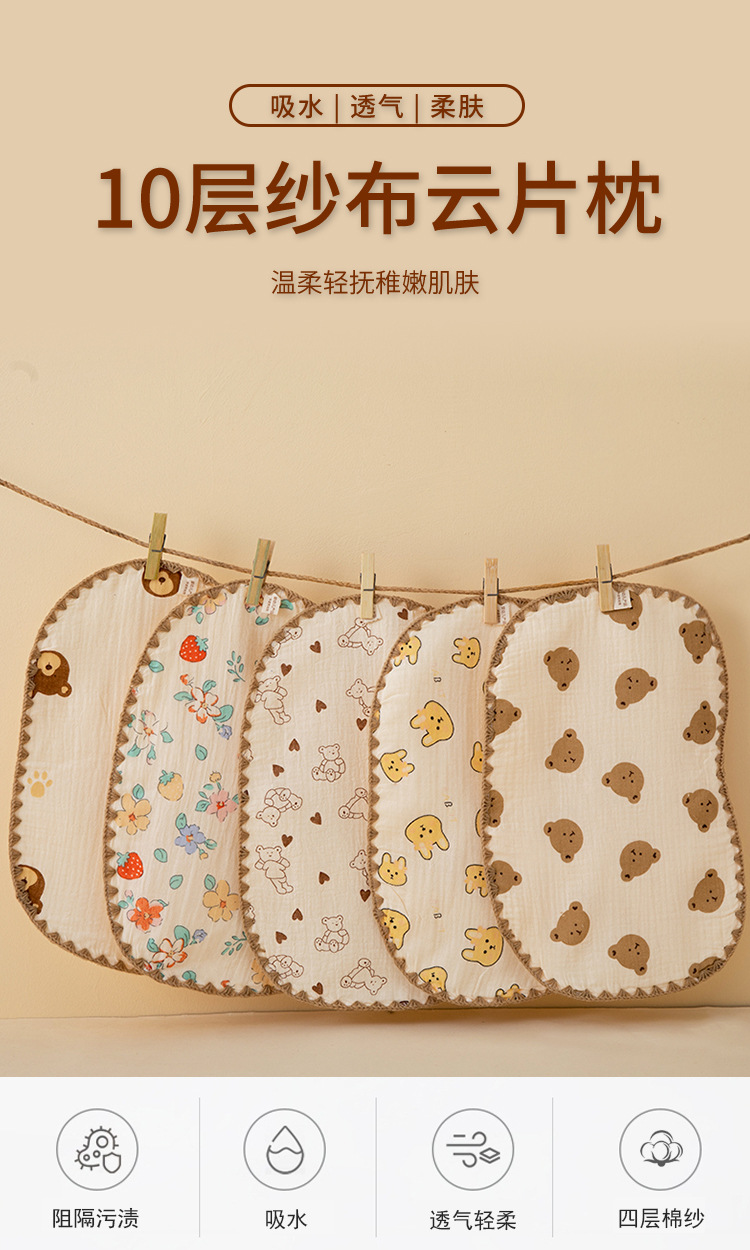 10 겹면 거즈 베개 탄생 구름 시트 베개 모양 베개 아기 플랫 베개 신생아 땀 흡수 통기성 베개 타월