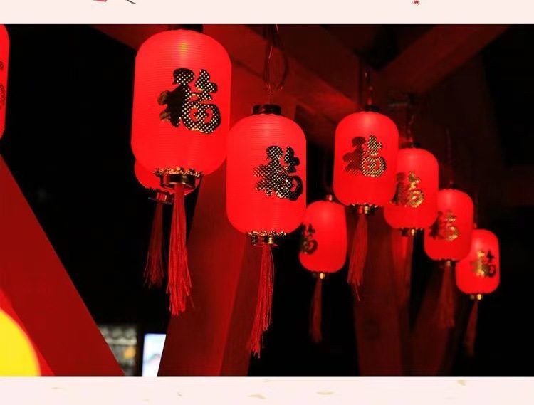 LED 레드 랜턴 랜턴 문자열 포춘 펜던트 봄 축제 새해 랜턴 장식 방수 플라스틱 야외 발광 작은 랜턴