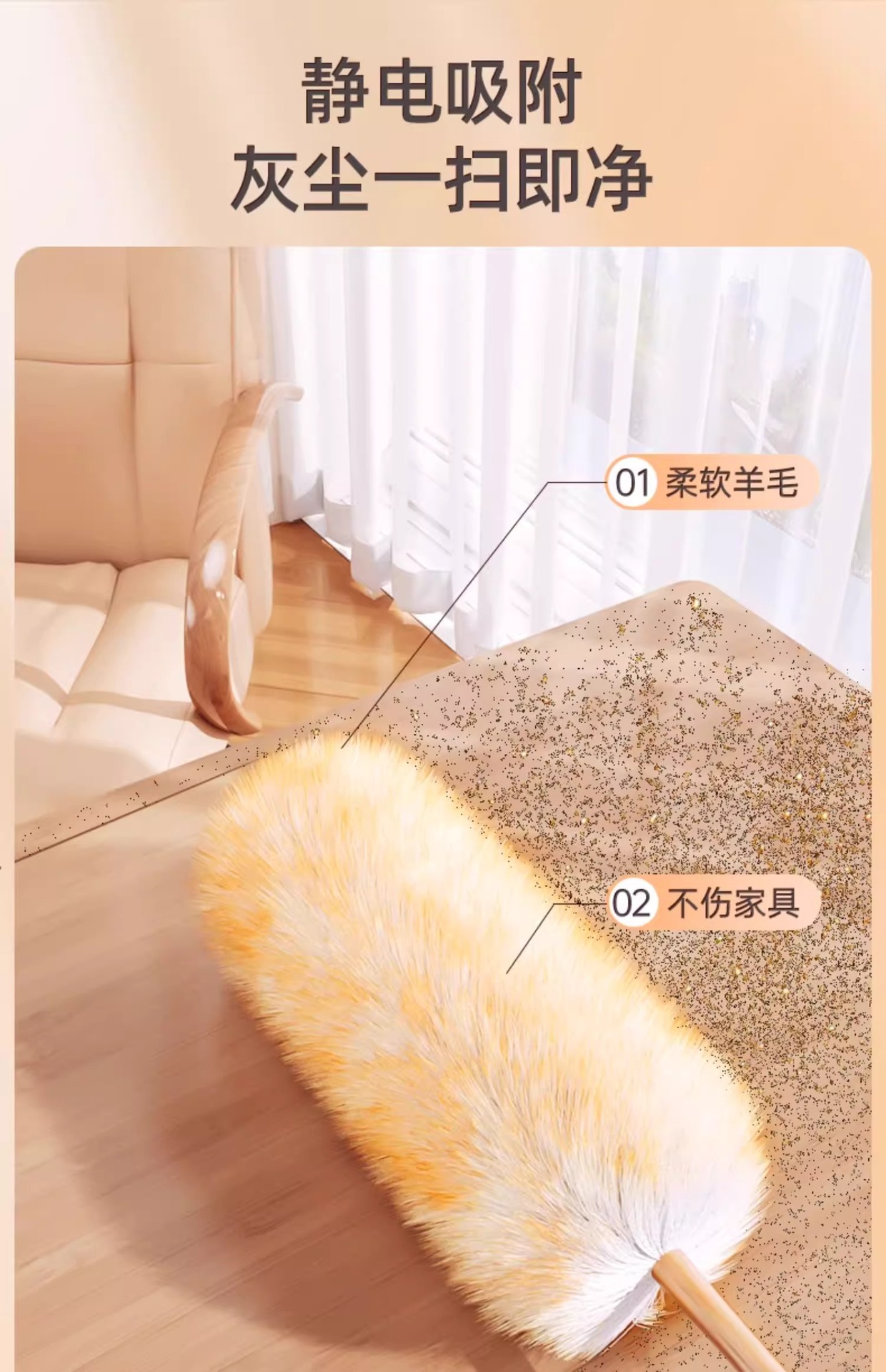 샹자메이 양모 먼지떨이 정전기 먼지떨이 가정용 고밀도 두꺼운 털빠짐 없는 차량용 청소 먼지 제거 순양모스토어 가기