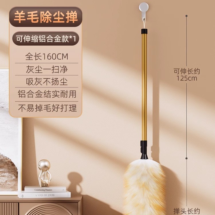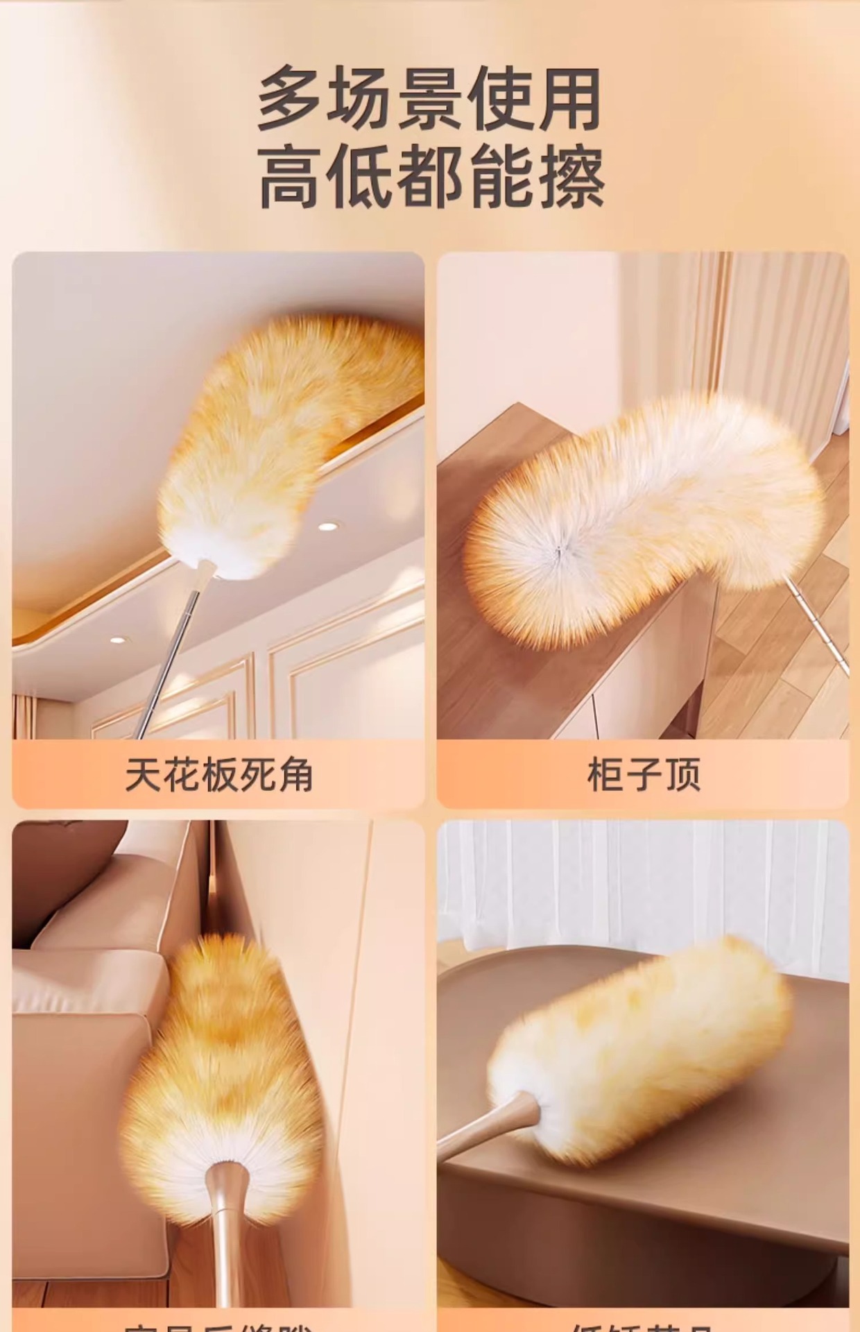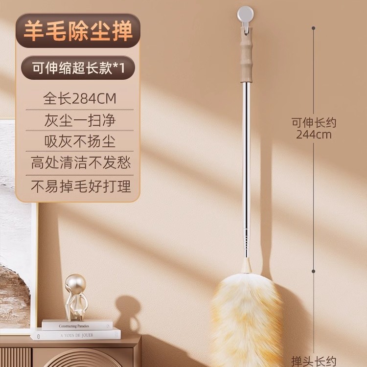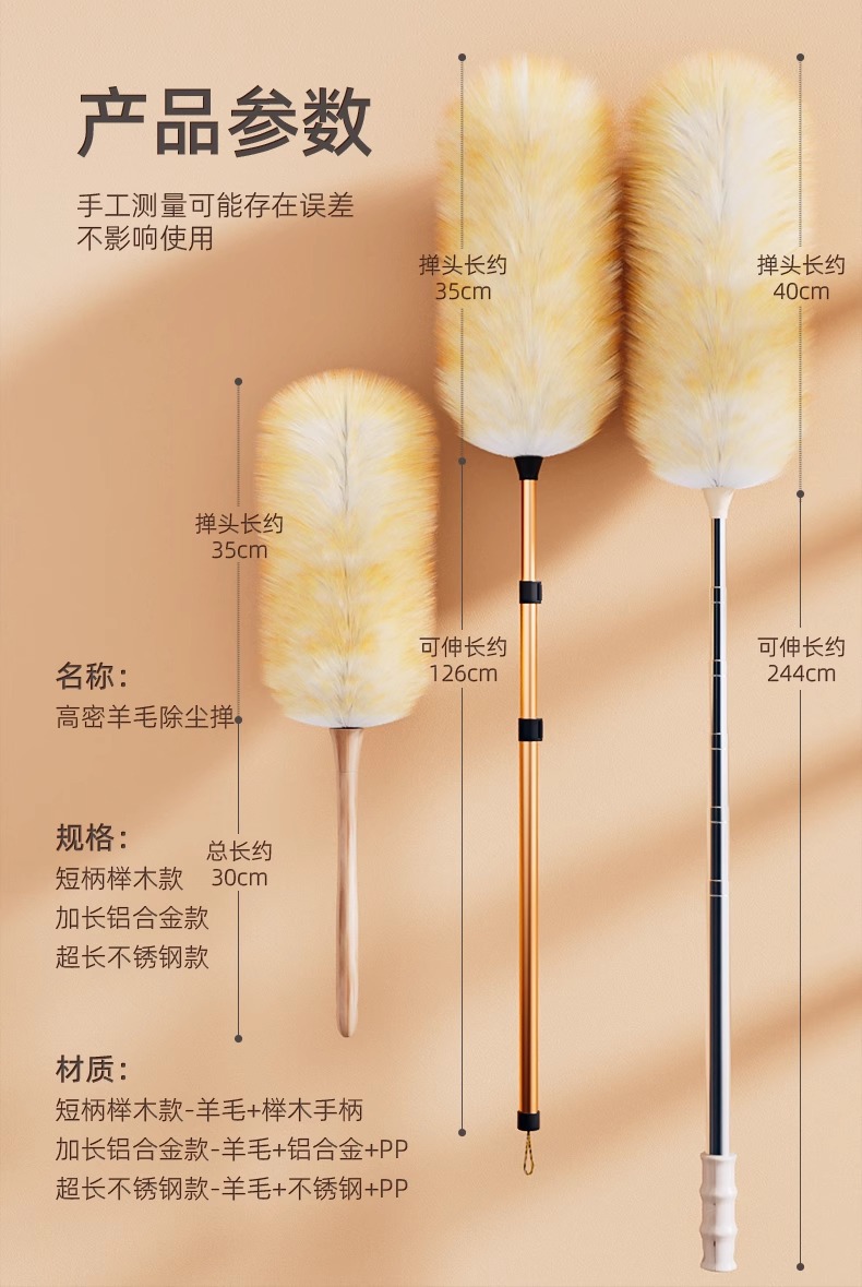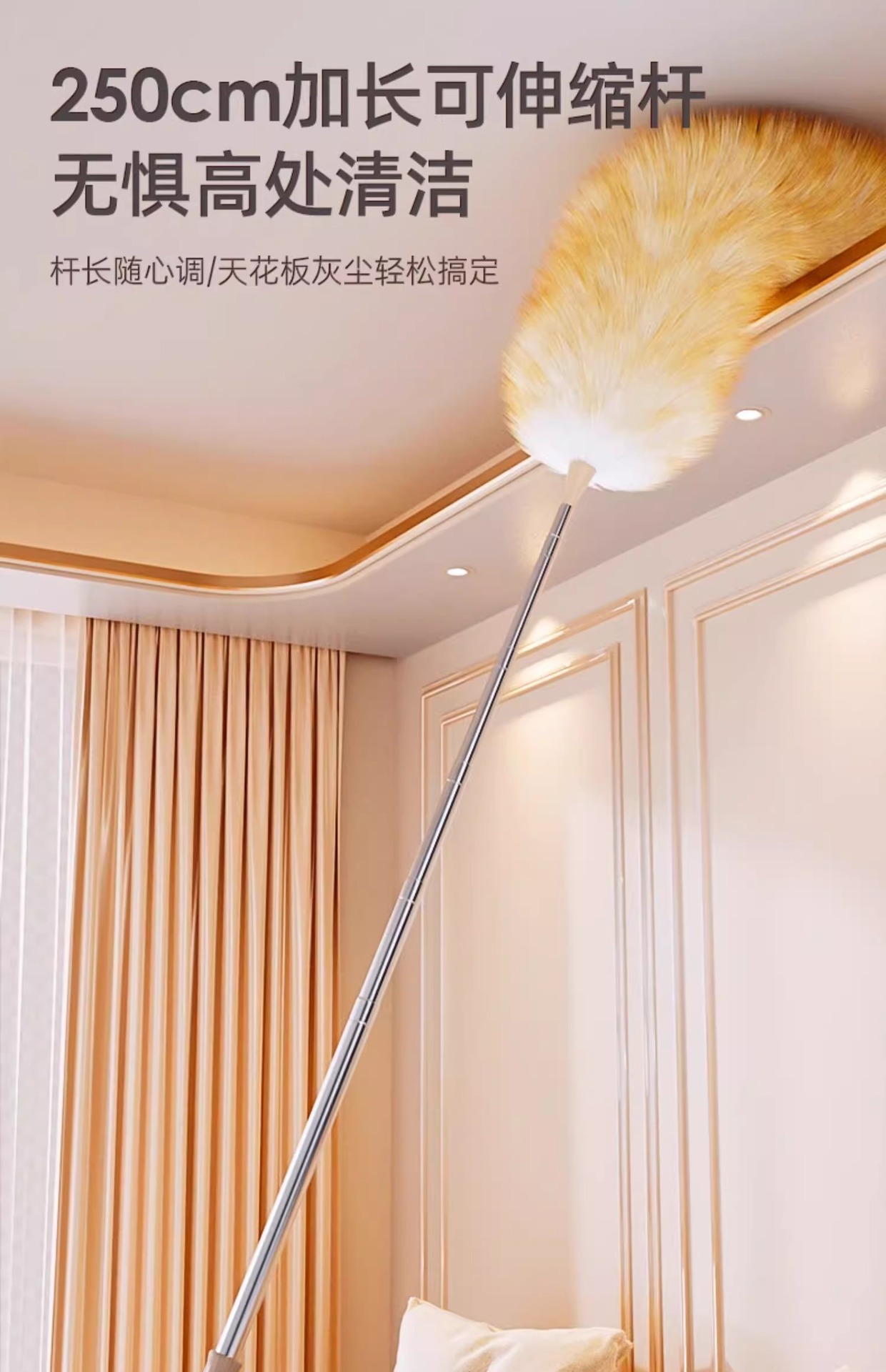• 【양모 먼지떨이】전체 길이 2.52m 스테인리스 스틸 길이 조절 고밀도 먼지떨이