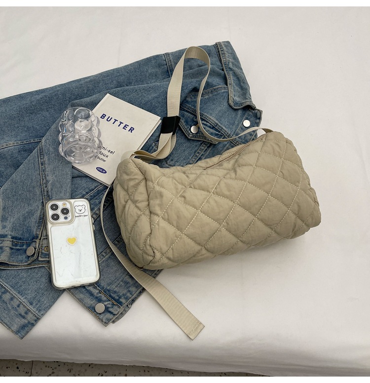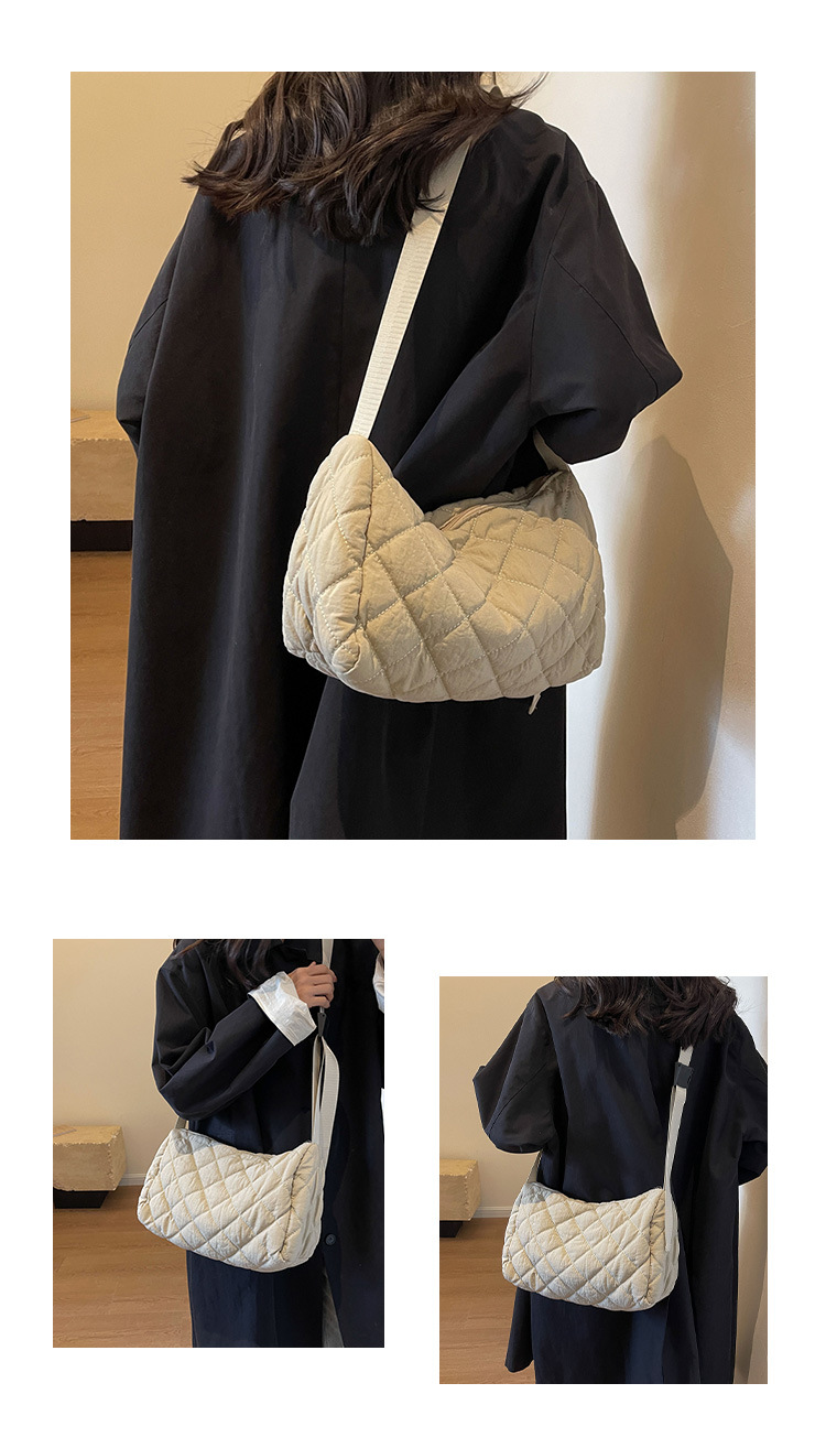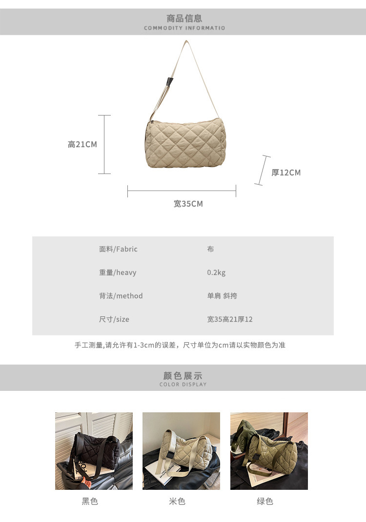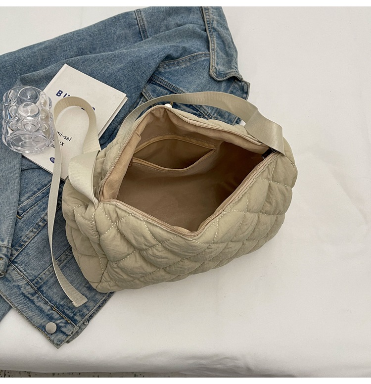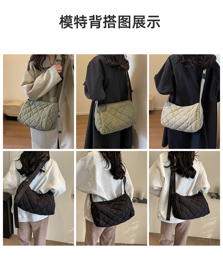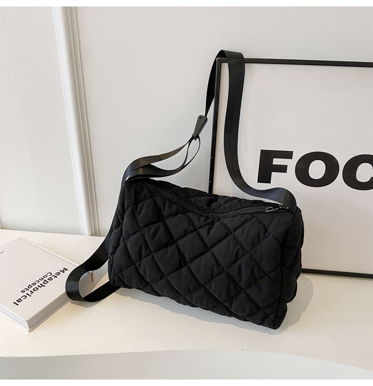 대용량 통근 가방 여성의 새로운 겨울 면 가방 마름모꼴 나일론 유행 캐주얼 숄더 크로스 바디 백
