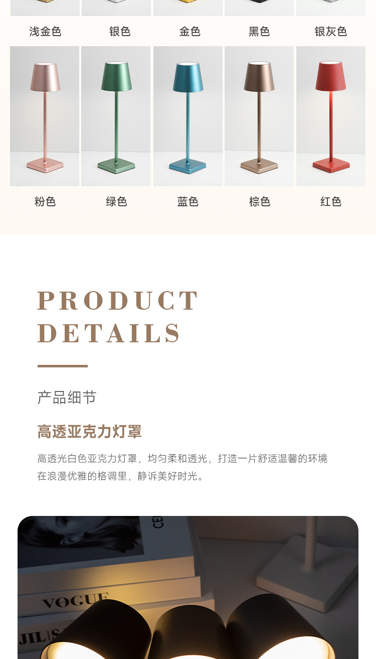 모든 알루미늄 충전식 테이블 램프 USB 현대 간단한 터치 바 KTV 야간 조명 Poldina 아마존 국경 도매스토어 가기