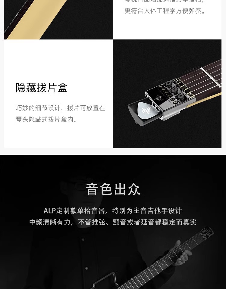 ALP FT221S 휴대용 접이식 헤드리스 일렉트릭 기타 음소거 초보자 연습 프로 연주 일렉트릭 기타스토어 가기