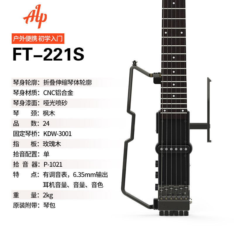 ALP FT221S 휴대용 접이식 헤드리스 일렉트릭 기타 음소거 초보자 연습 프로 연주 일렉트릭 기타