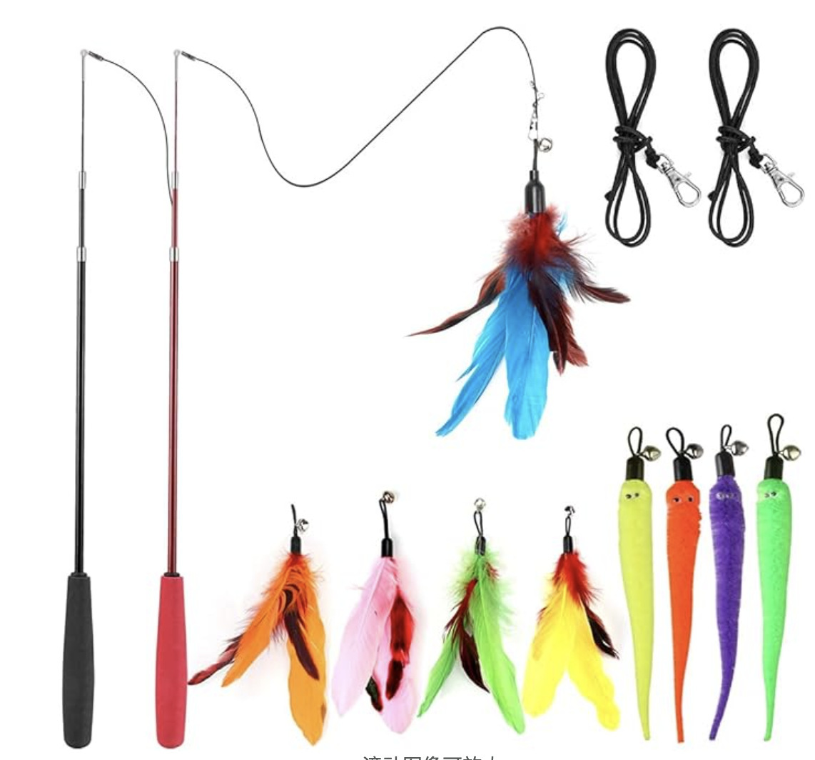 웃긴 고양이 스틱 봉제 장난감 깃털 교체 머리 개폐식 극 고양이 자기 엔터테인먼트 씹는 장난감 세트스토어 가기