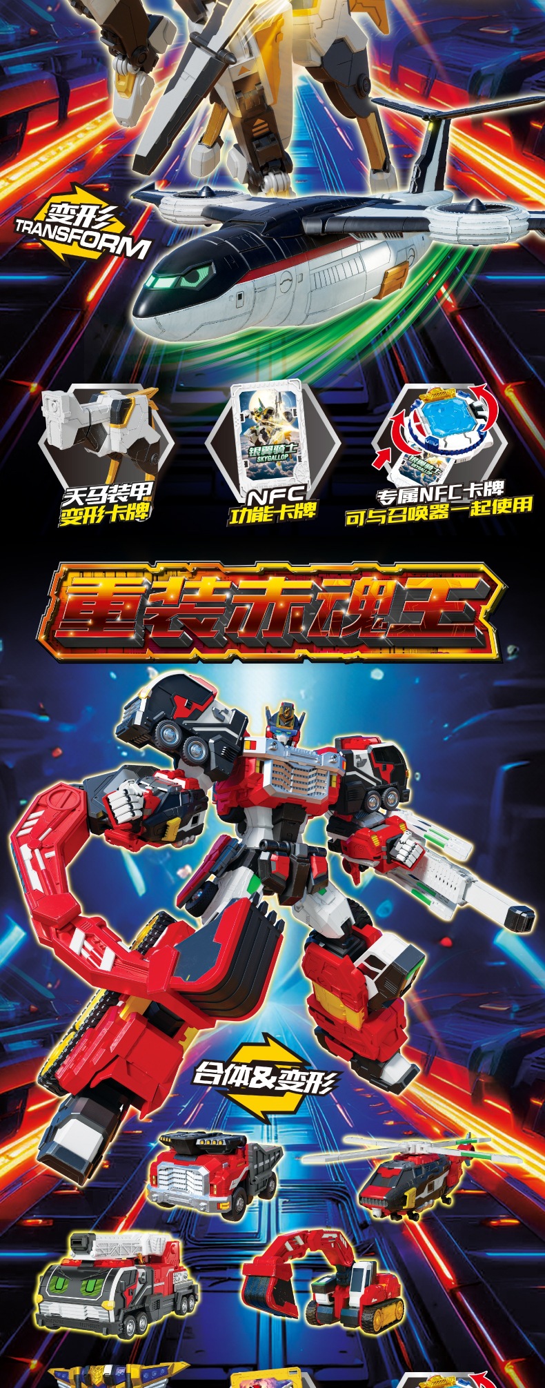 • 8164 리로드 레드 소울 킹 - 파이어 4가지 합체, 5가지 형태 + 무기 카드