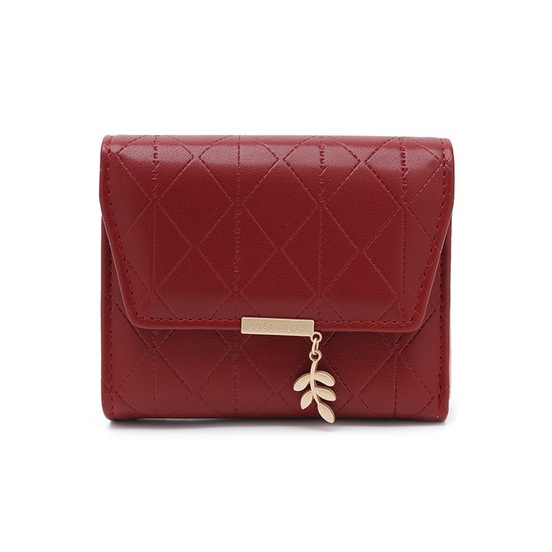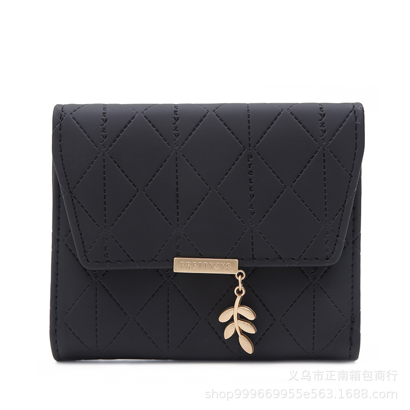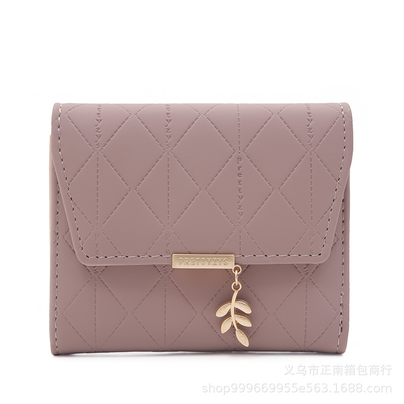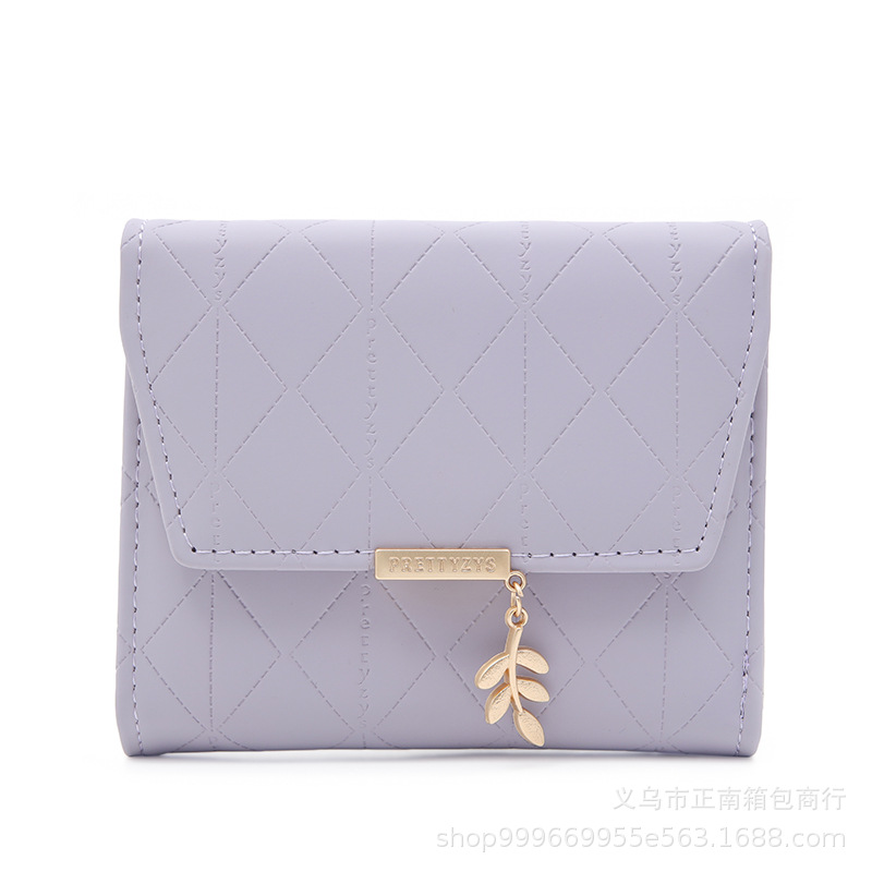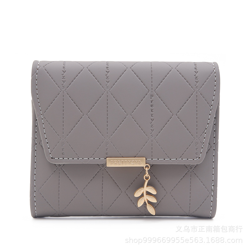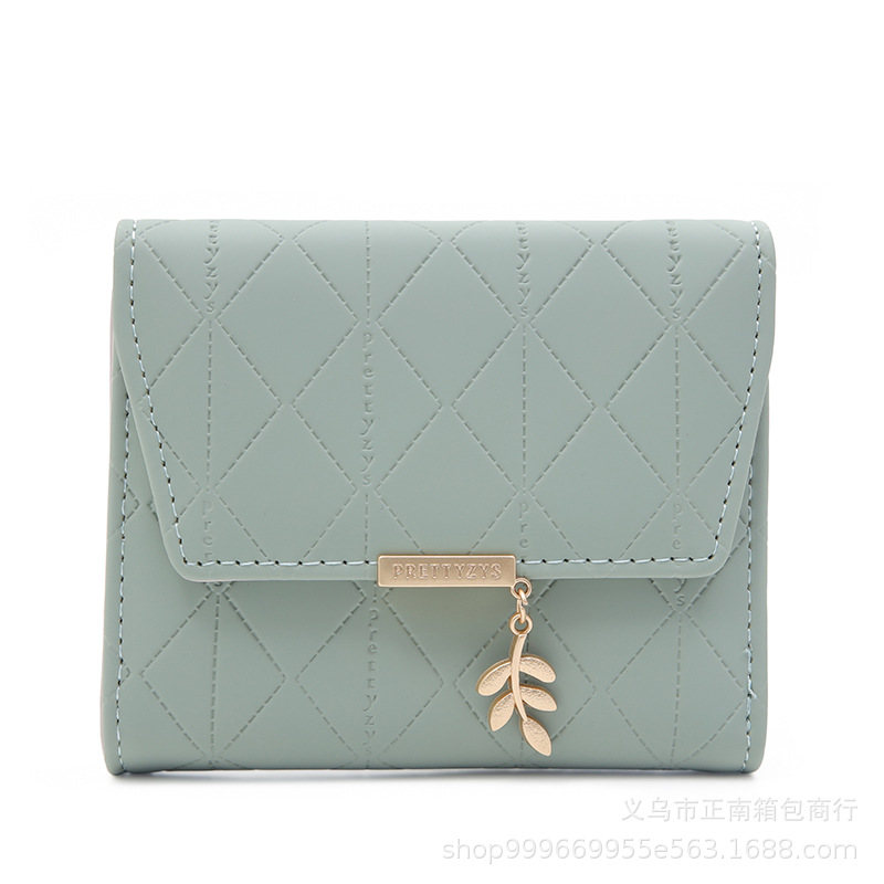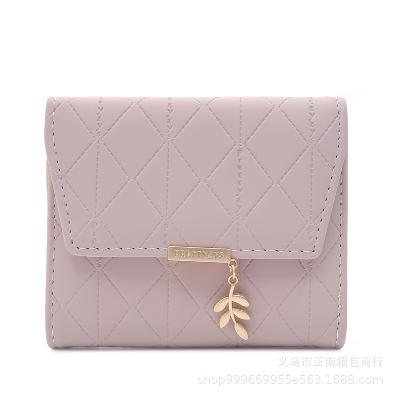 재고 도매 여성용 짧은 지갑 한국 스타일 PU 나뭇잎 펜던트 70% off 카드 수납 공간이 있는 접이식 핸드백 동전 지갑스토어 가기
