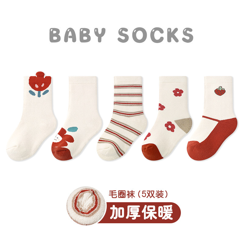 5 쌍-아기 양말 도매 가을과 겨울 두꺼운 튤립 테리 양말 빗질면 카테고리 귀여운 아기 소녀 양말스토어 가기
