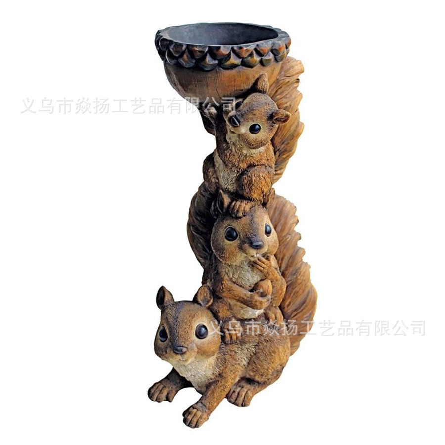 국경 간 새로운 꽃과 새 장식 동물 새 피더 귀여운 세 다람쥐 정원 장식 수지 공예 장식품