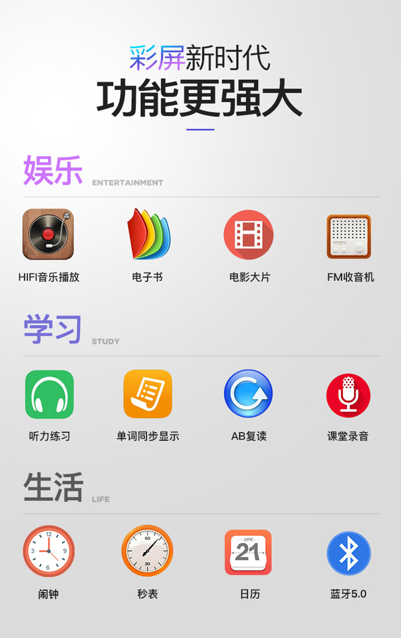 ※ 支持:收音机、文件夹、蓝牙、闹钟等功能;