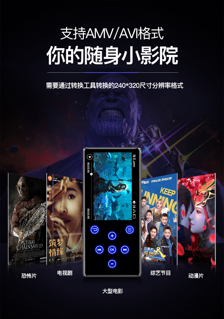 ※ 视频播放:支持AMV,AVI(需要通过转换工具转成320*240分辨率格式);