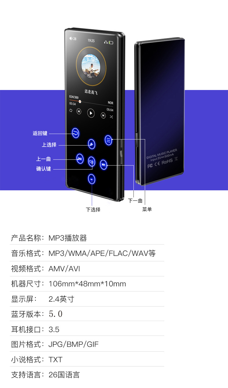 ※ 音乐播放:支持MP3、WMA、WAV、APE、FLAC、AAC-LC、M4A、OGG等格式播放;