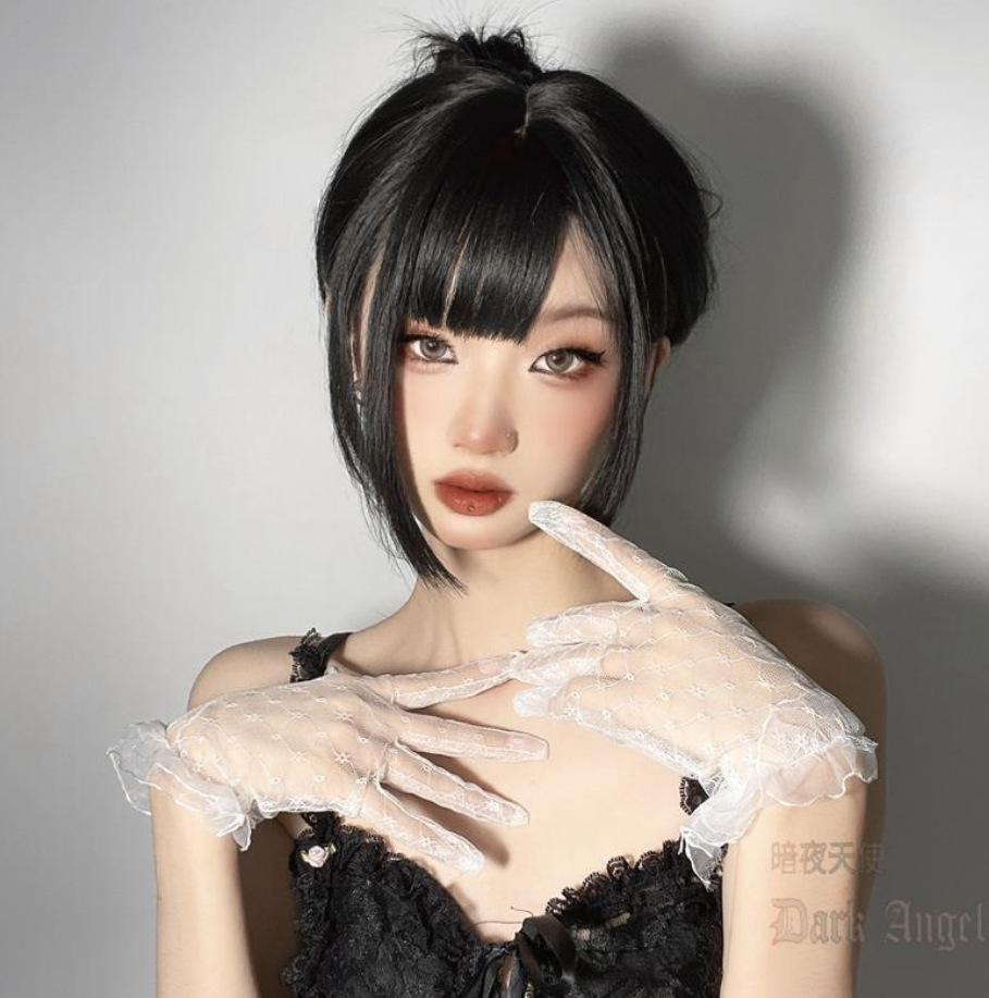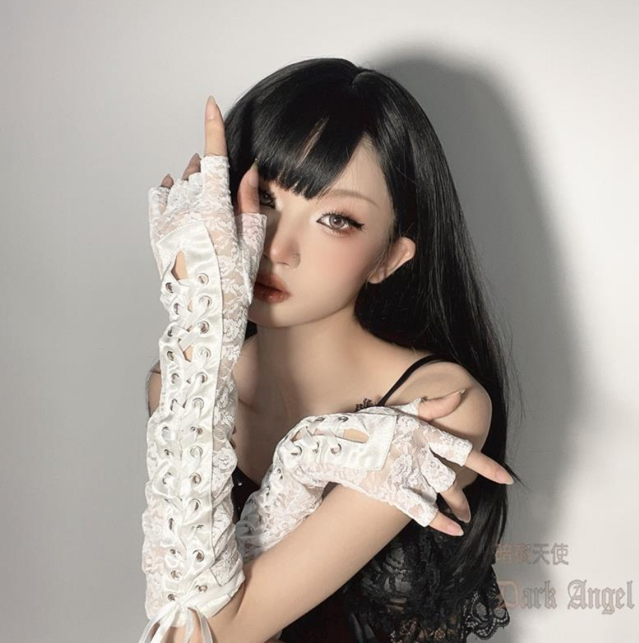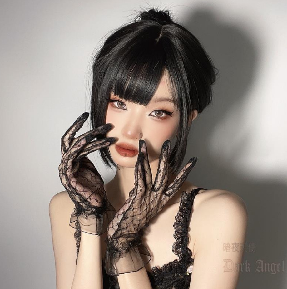 코트 스타일 빈티지 장식 장갑 블랙 레이스 하이 엔드 웨딩 장갑 프랑스 섹시 손가락 장갑 소매