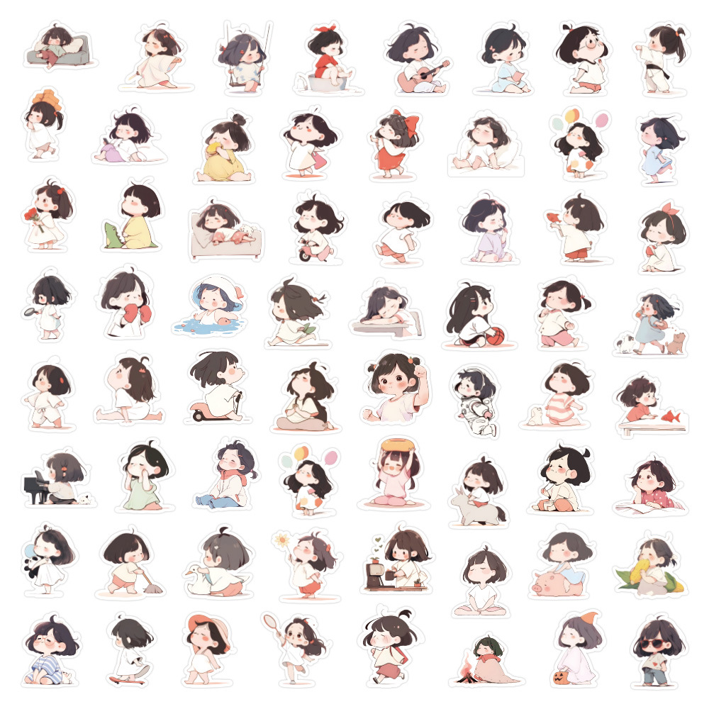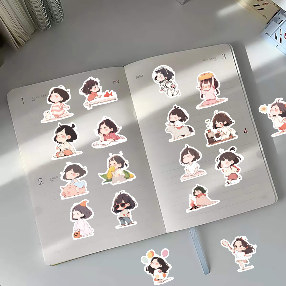 60 만화 어린 소녀 귀여운 스티커 ins 핸드북 크리 에이 티브 장식 노트북 ipai 핸드북 diy 스티커스토어 가기