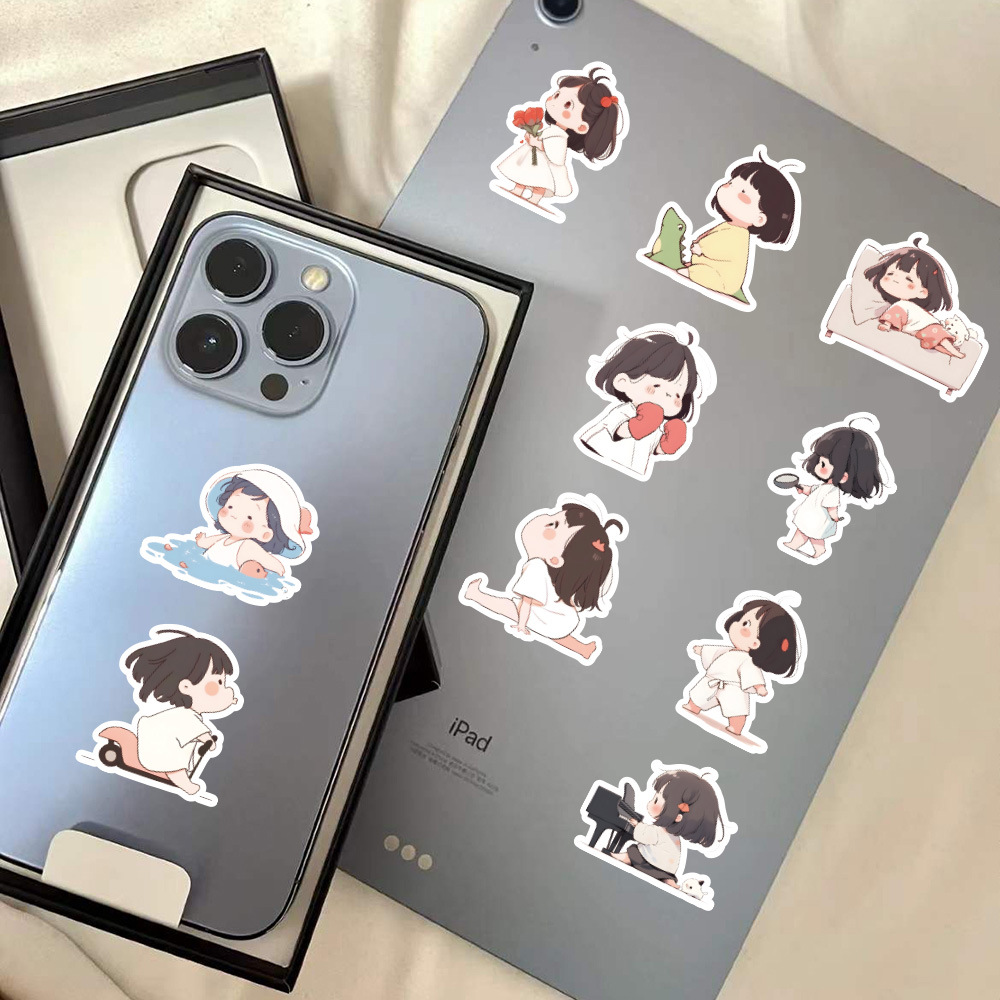 60 만화 어린 소녀 귀여운 스티커 ins 핸드북 크리 에이 티브 장식 노트북 ipai 핸드북 diy 스티커