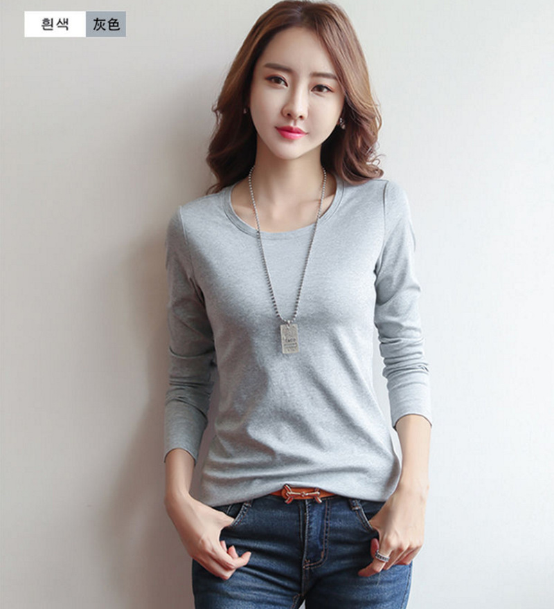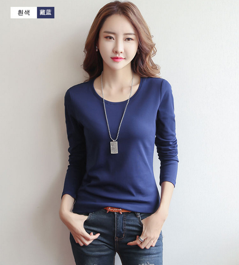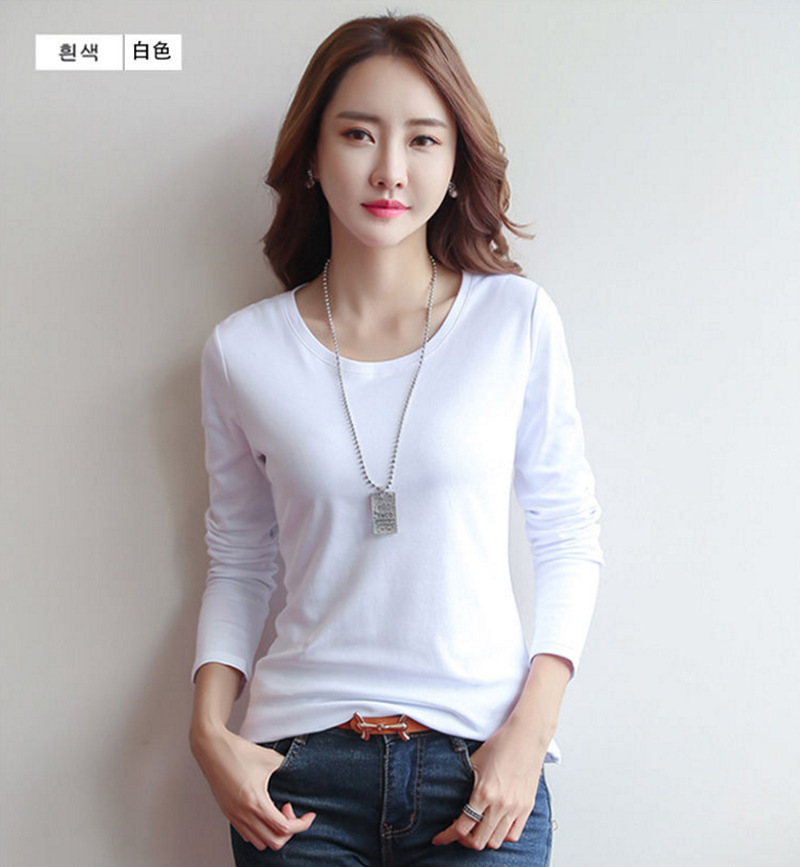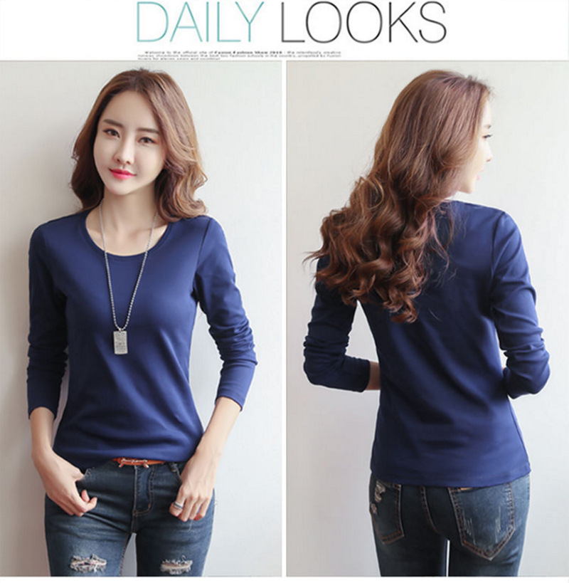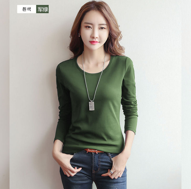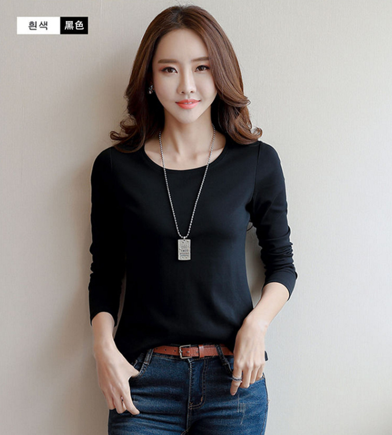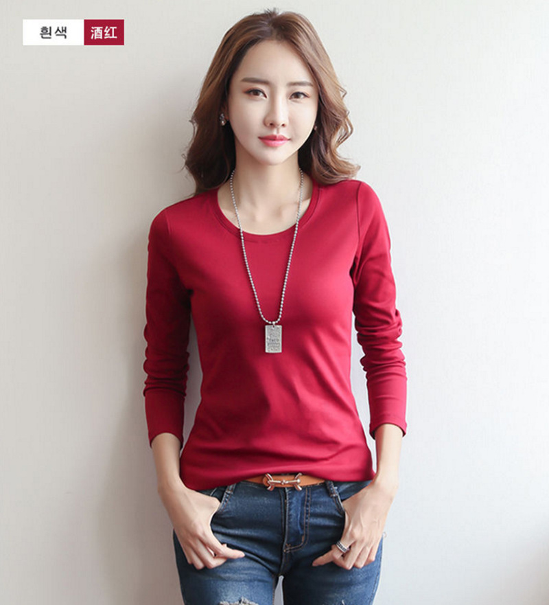 가을 2022 긴 소매 여성 티셔츠 단색 일본 슬림 얇은 풀오버베이스 셔츠 슬림 여성 도매스토어 가기